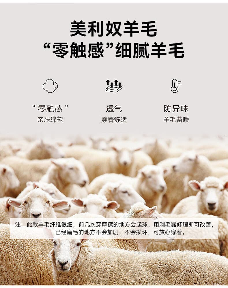 精选澳洲美利奴羊毛,触感柔软亲肤无刺痒。