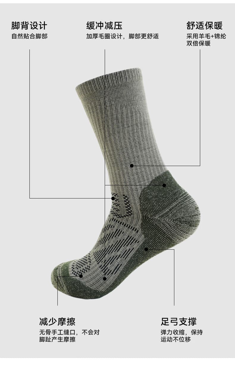 这款集保暖、防臭、减震、防滑于一体的专业羊毛袜。
