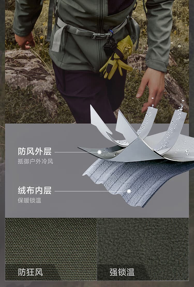 细腻抓绒内里亲肤锁温,秋冬户外保暖不闷黏。