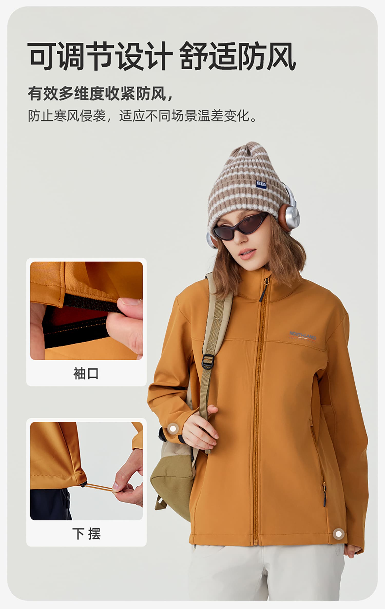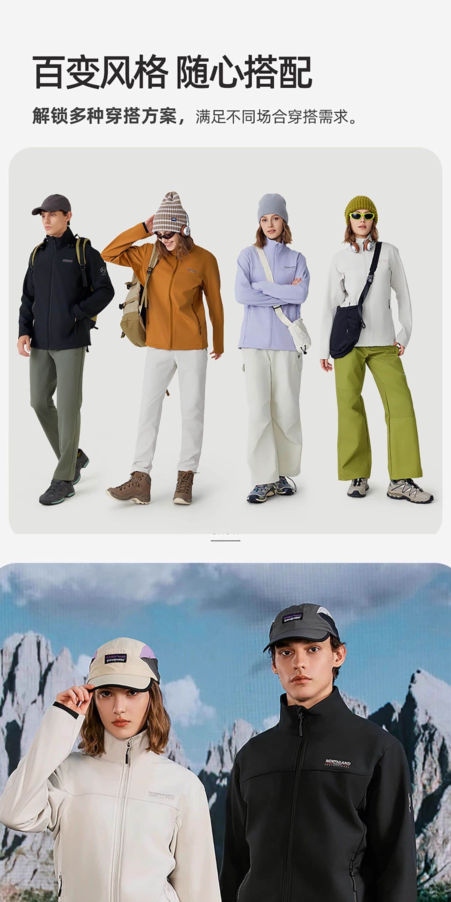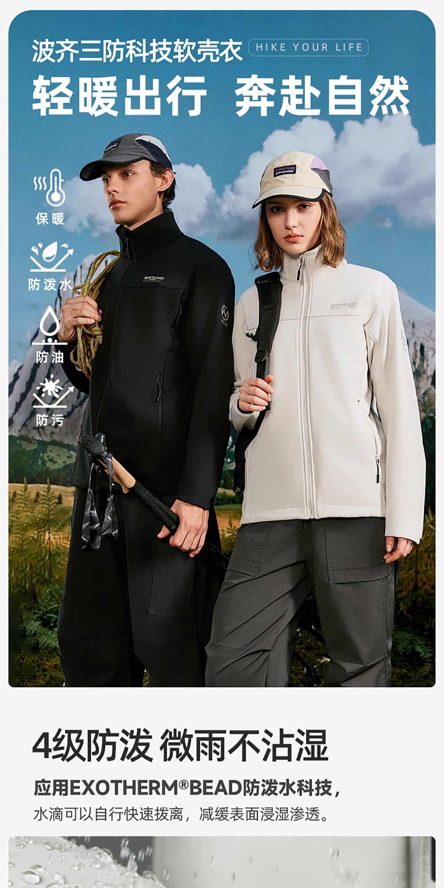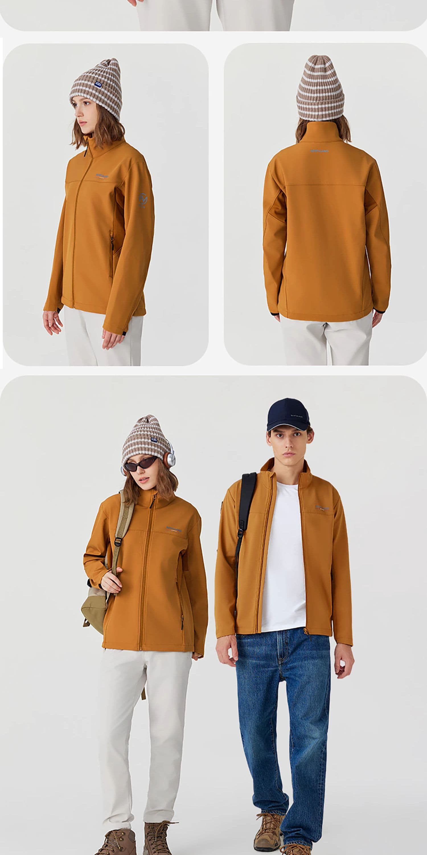 NORTHLAND诺诗兰 软壳衣 户外男女弹力外套 修身防风防泼水徒步登山外套上衣 NXJEH0505E 棕黄色