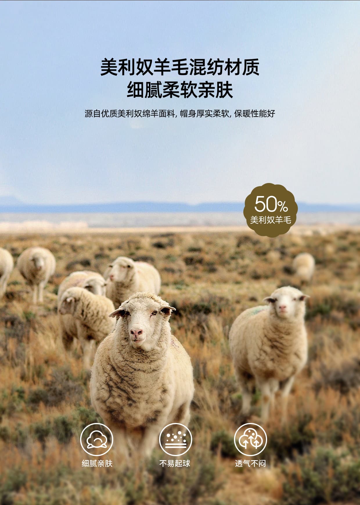 精选细旦美利奴羊毛面料,触感柔软无刺痒,敏感肌也适配。