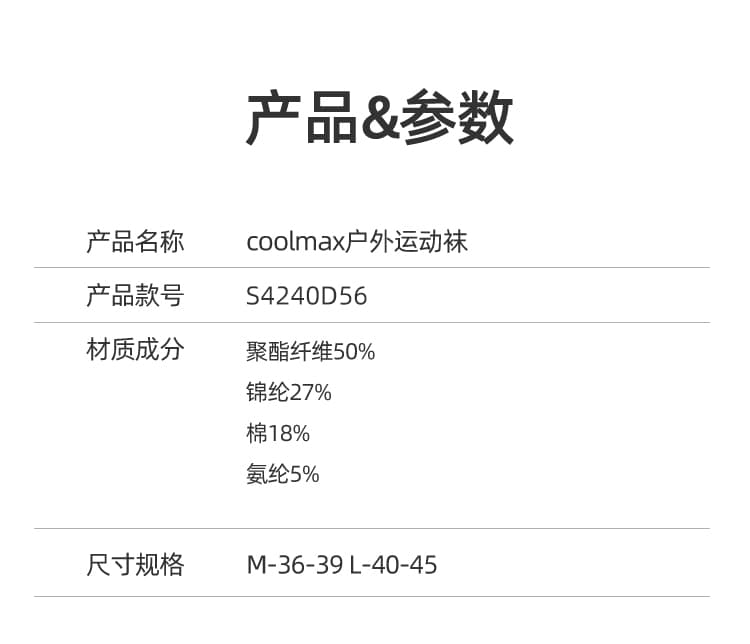 SCALER思凯乐 户外徒步袜子 coolmax运动男女户外登山跑步防滑中筒袜 S4240056 碳灰 吸湿排汗 轻盈透气