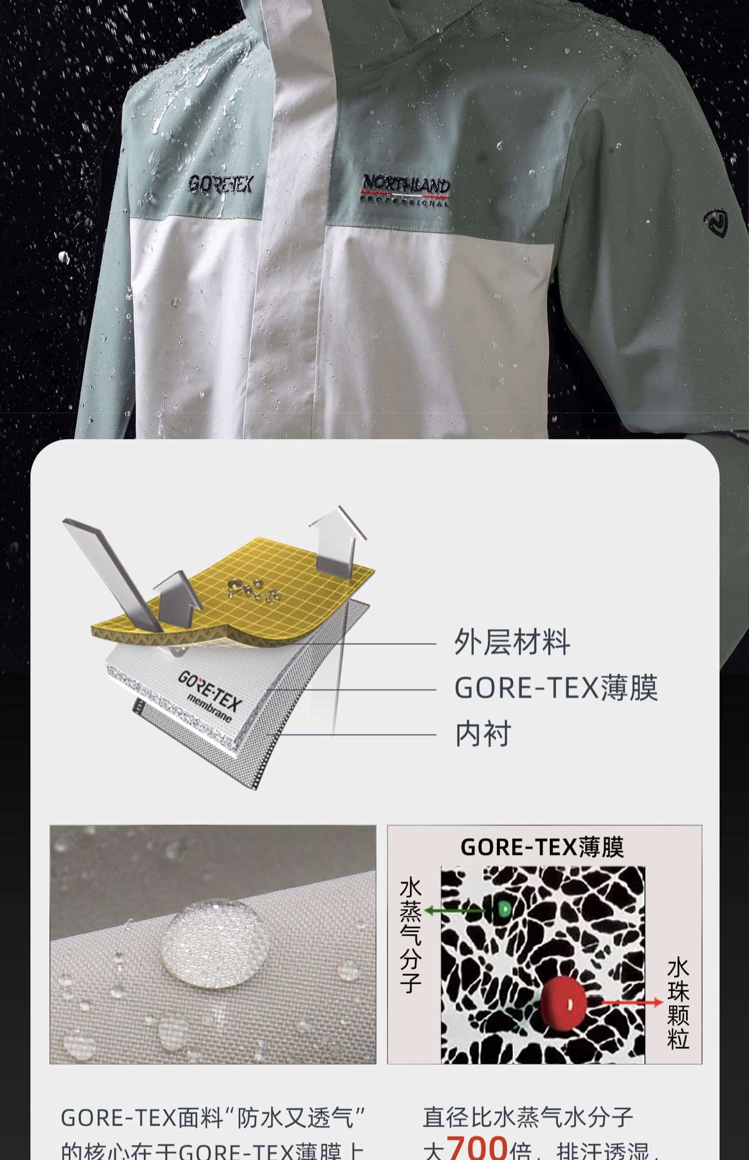 NORTHLAND诺诗兰 男 GORE-TEX冲锋衣 徒步男士户外防水防风登山服 NWJEH5501S 悬崖卡其色/暖石咖色