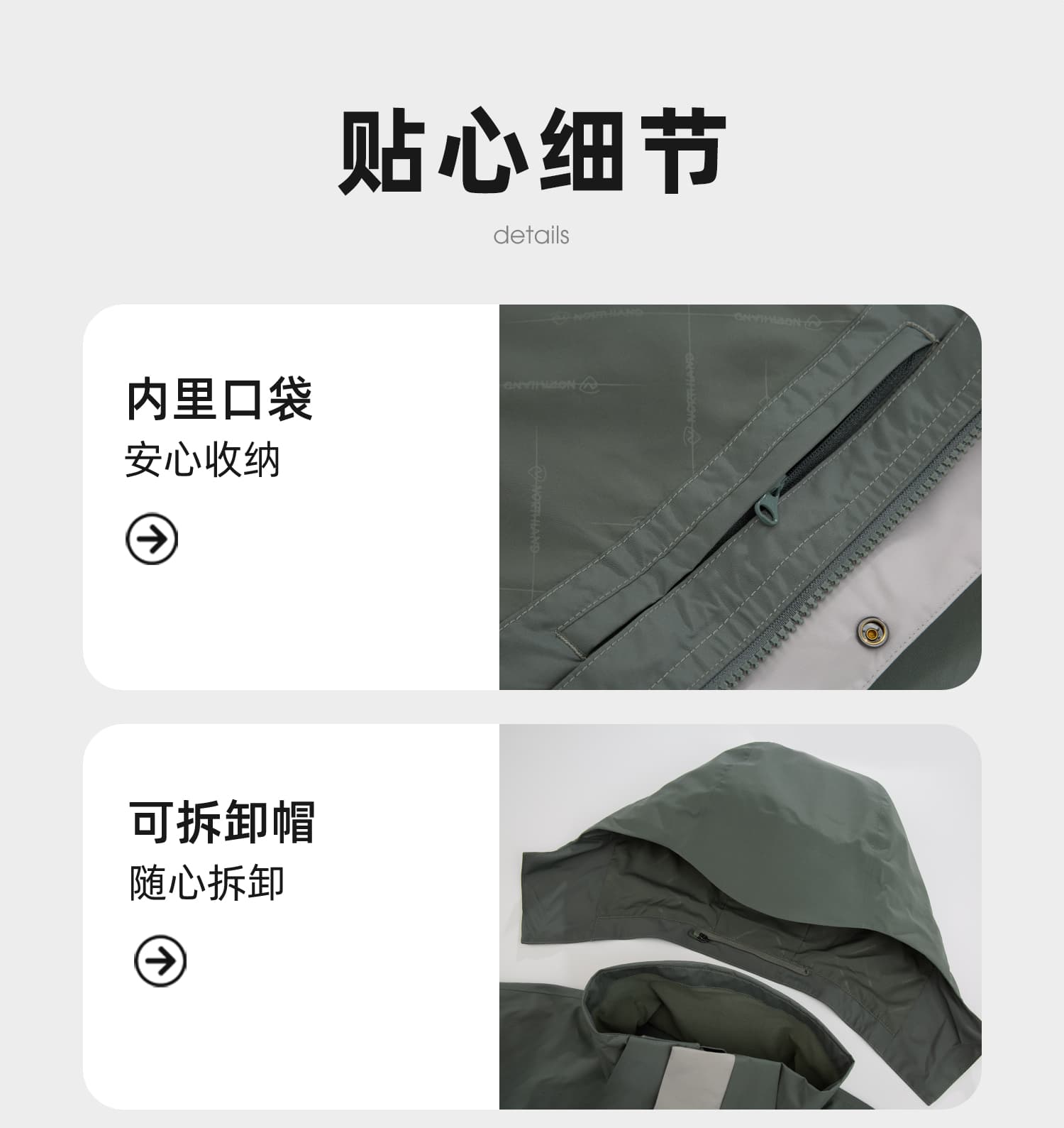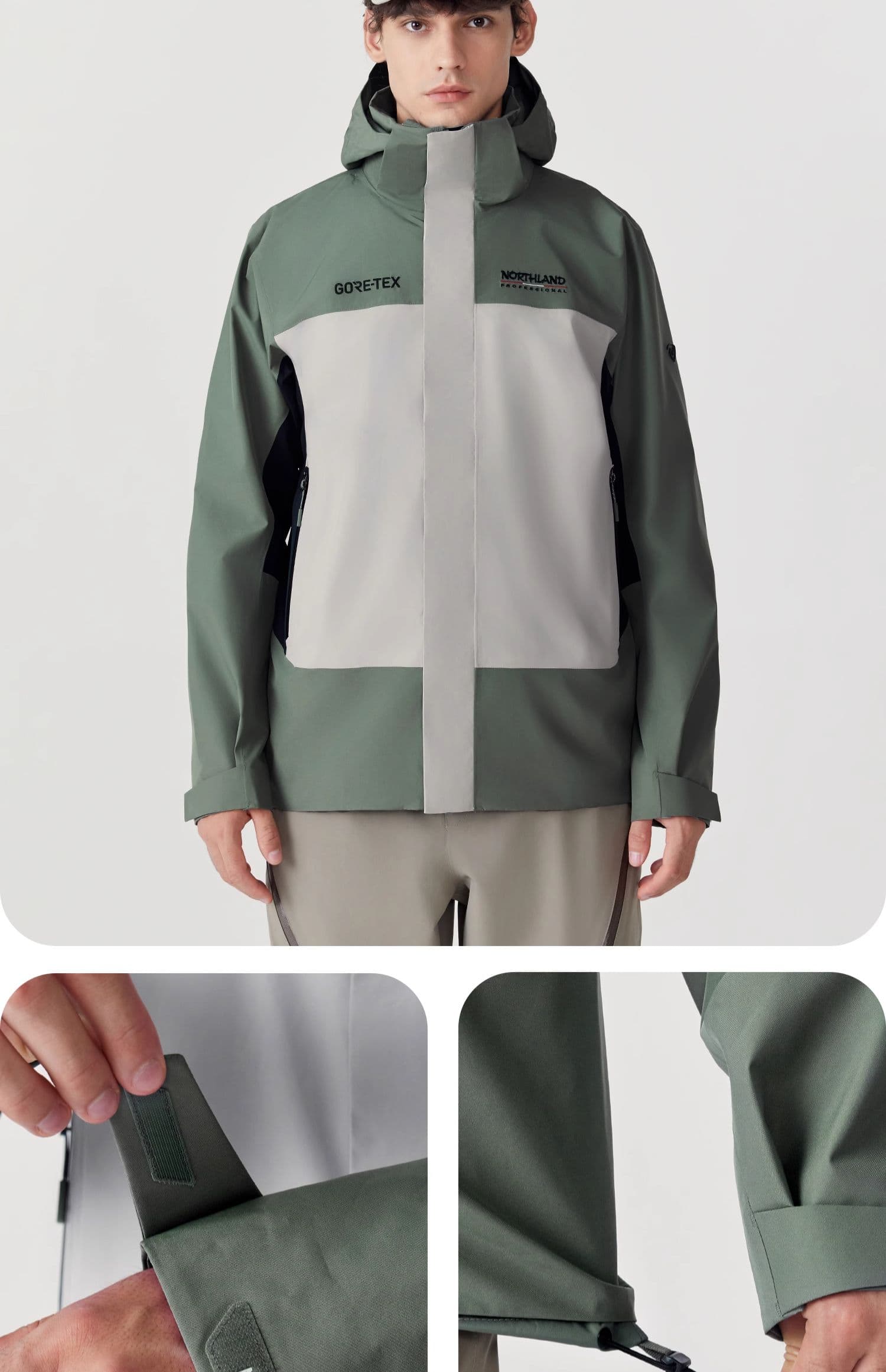可调风帽、袖口及下摆抽绳强化防护