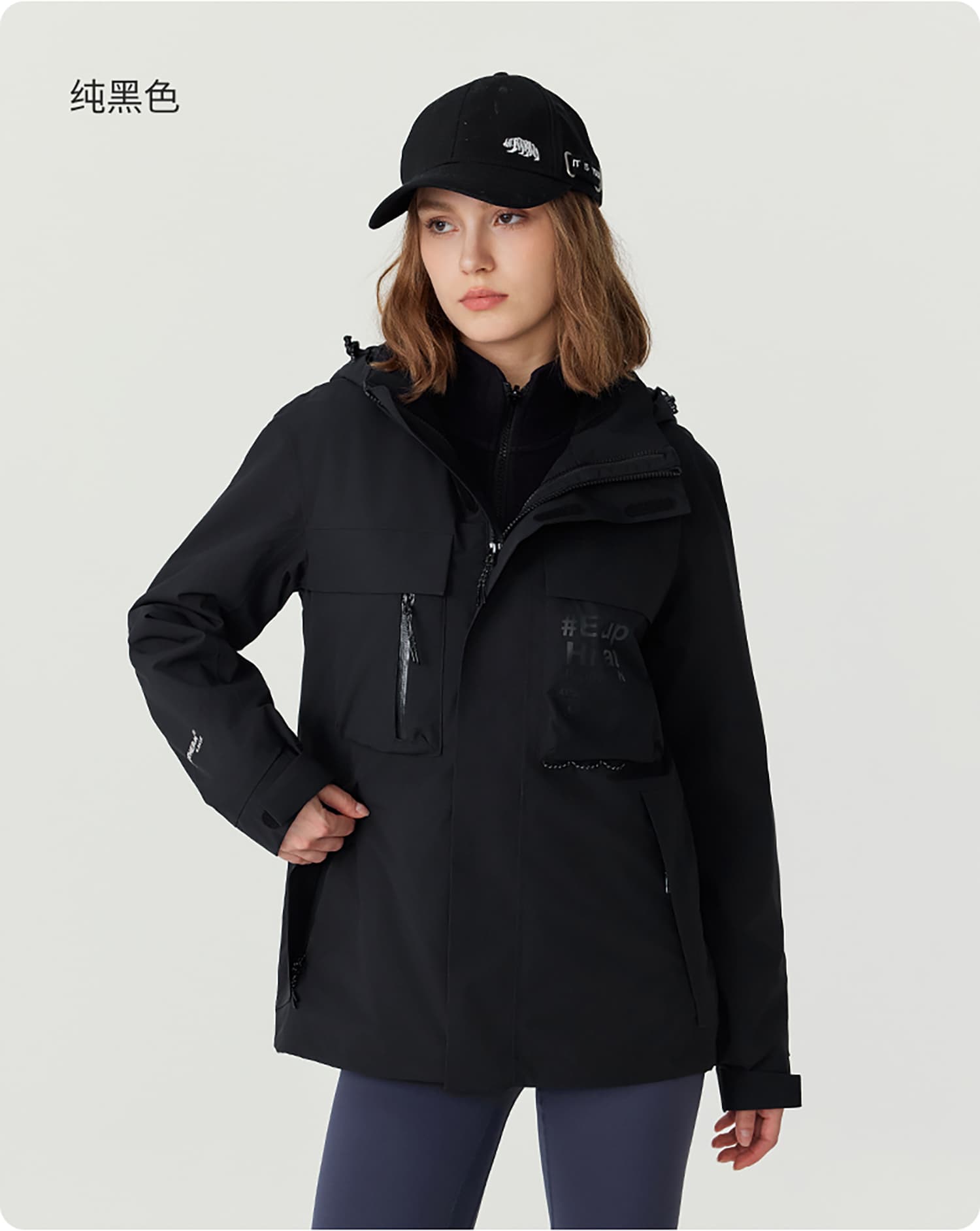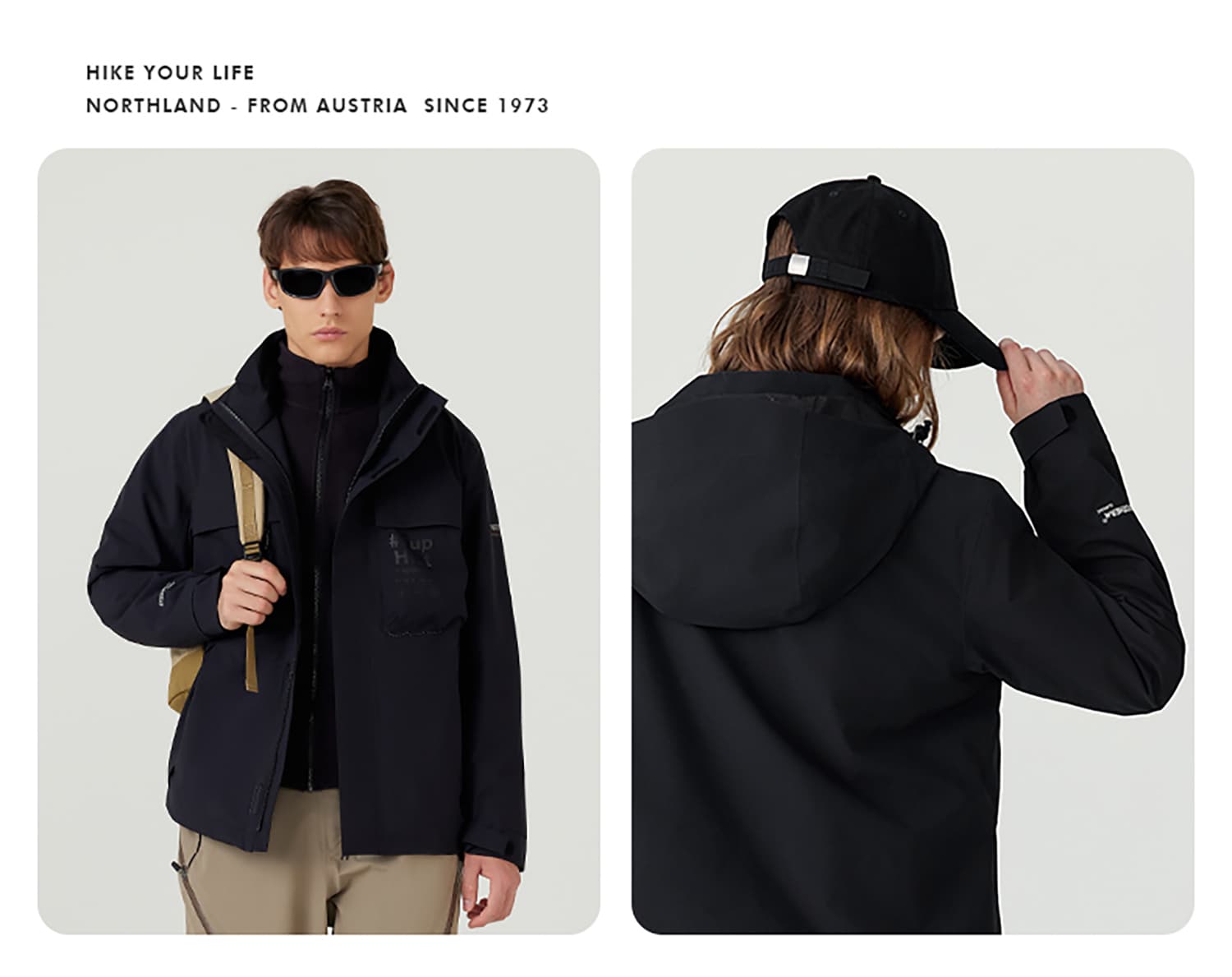 NORTHLAND诺诗兰 三合一冲锋衣 秋冬男女户外保暖防风防泼水徒步登山服外套 NWJET0505E 纯黑色