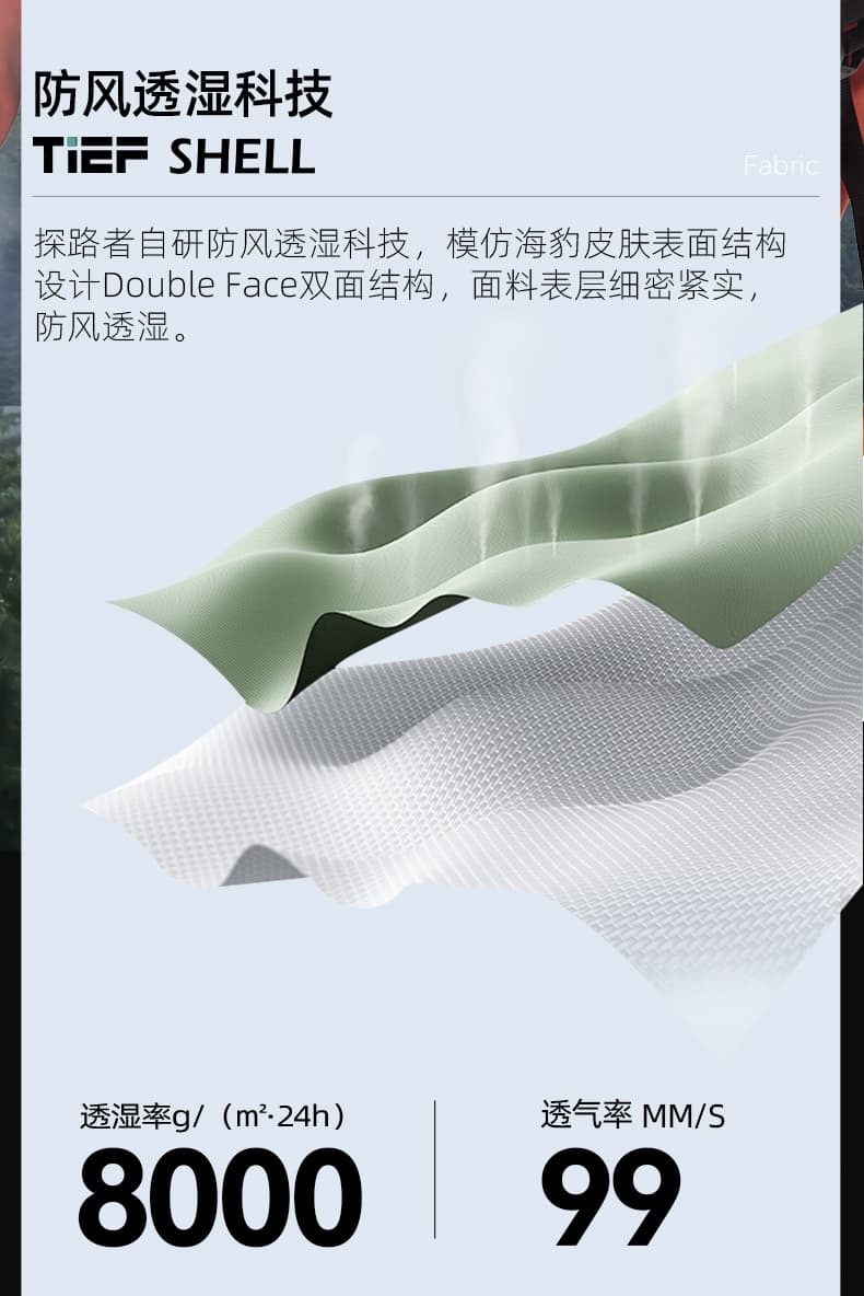 搭载 TiEF SHELL-X1 极地仿生防风科技