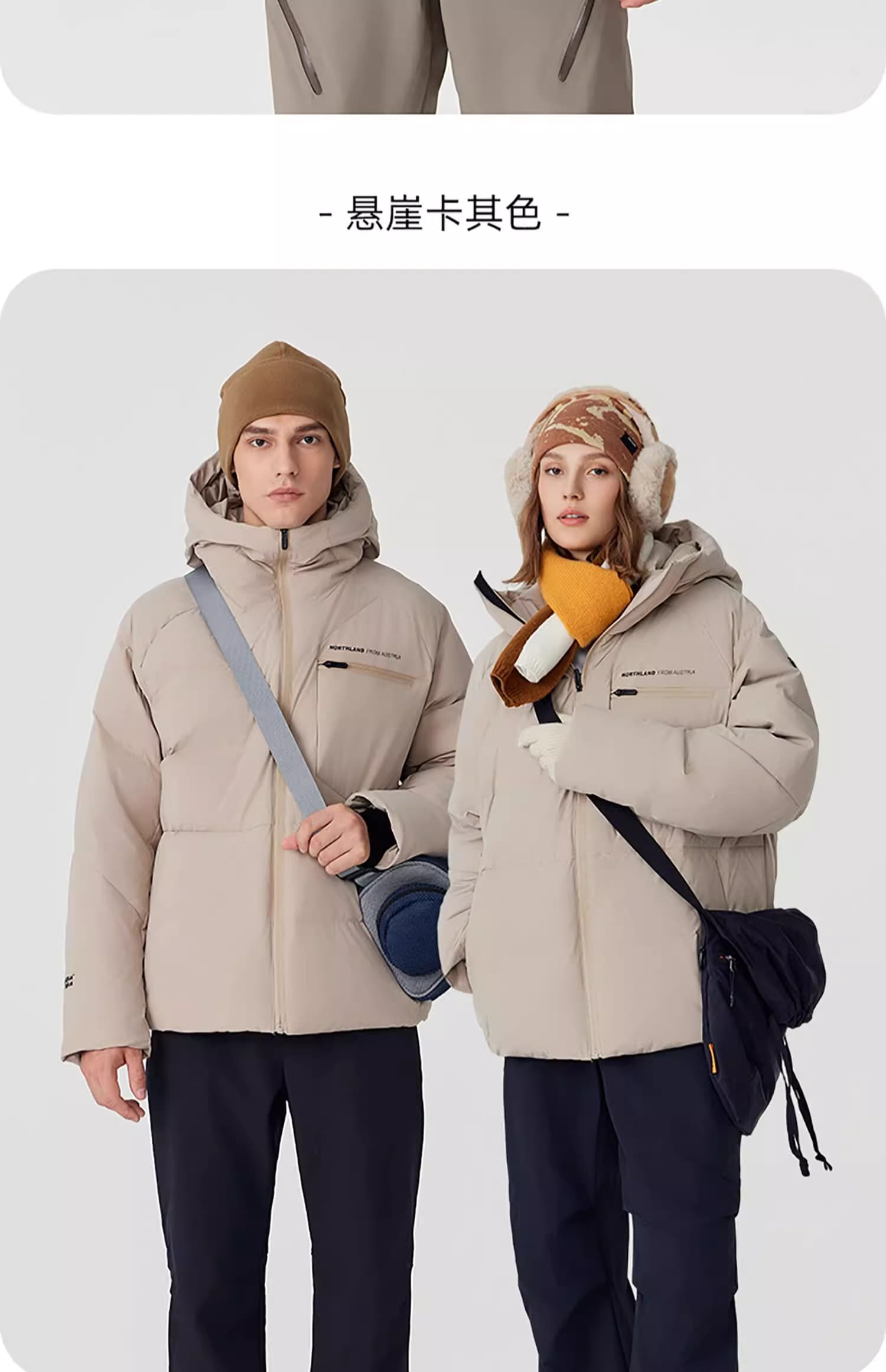 诺诗兰 男女鹅绒羽绒服 户外徒步三防保暖抗寒登山运动外套羽绒衣 NDJET0591E 悬崖卡其色