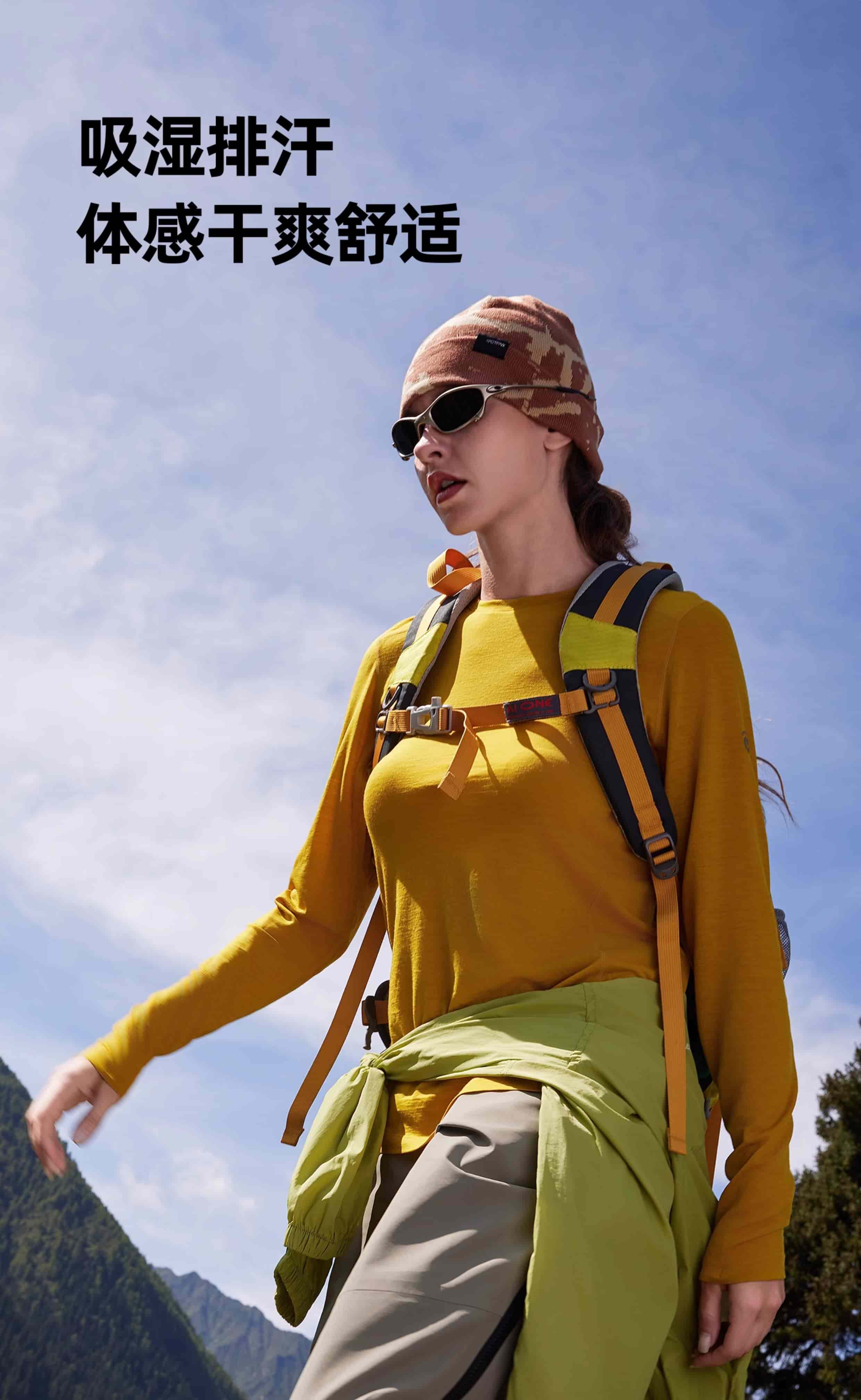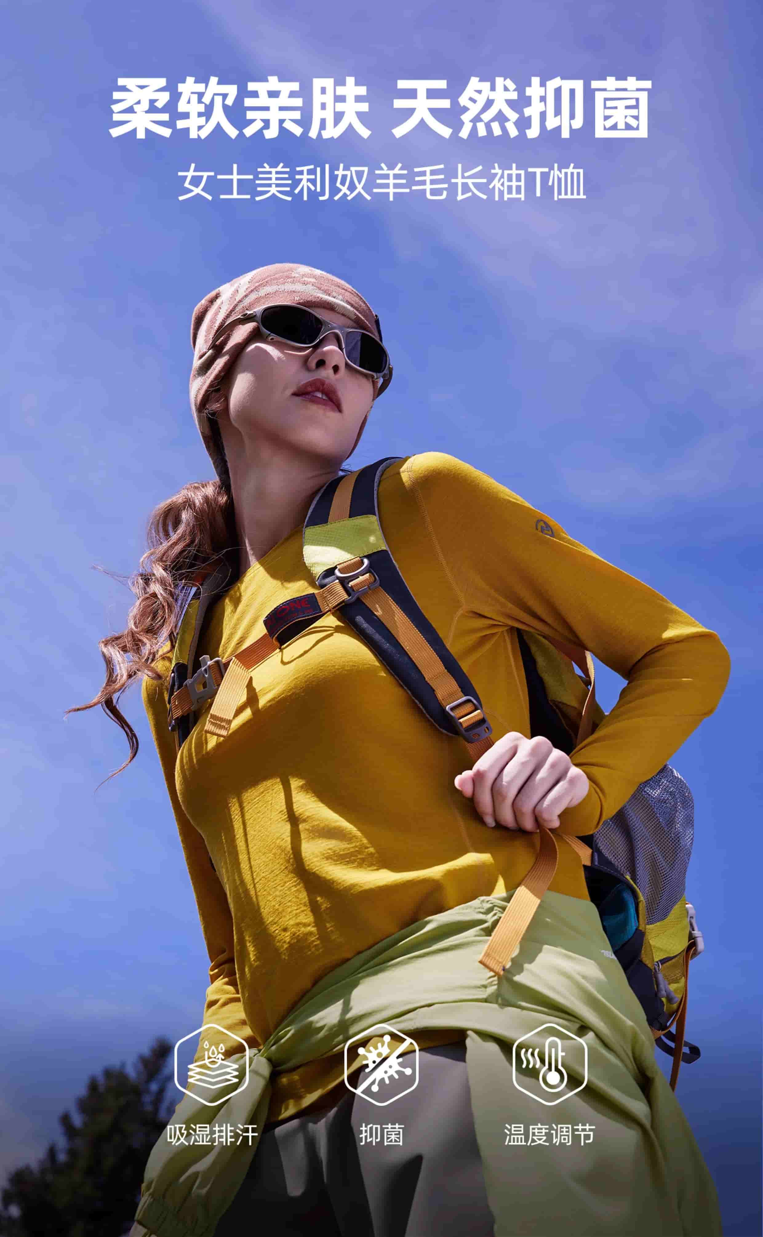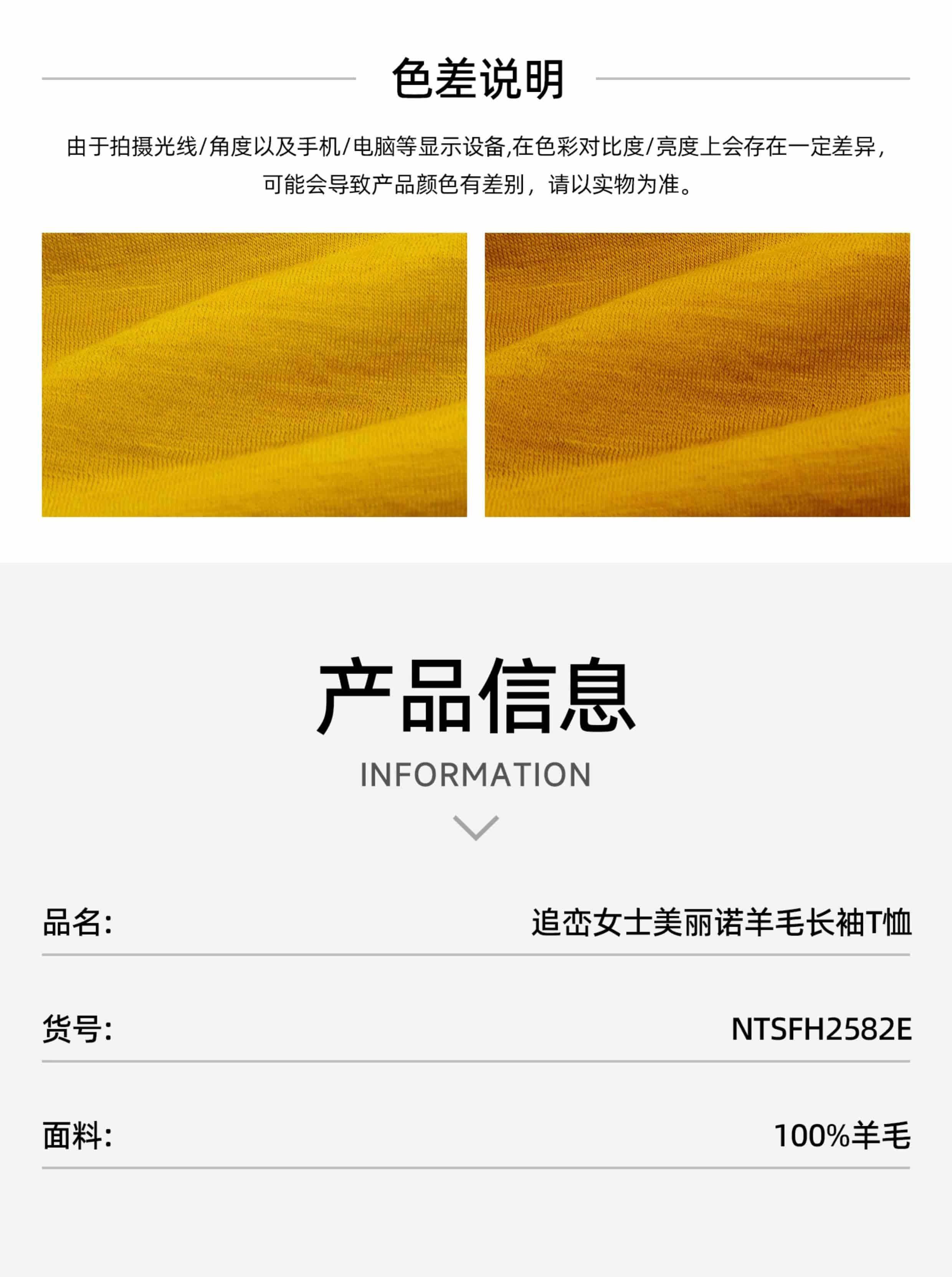 NORTHLAND诺诗兰 女 美利奴羊毛长袖 25新吸湿排汗透气运动抑菌徒步上衣 NTSFH2582E 雅梨黄色