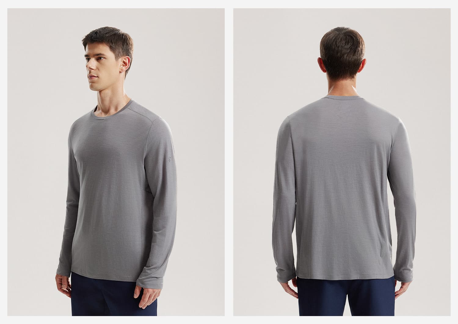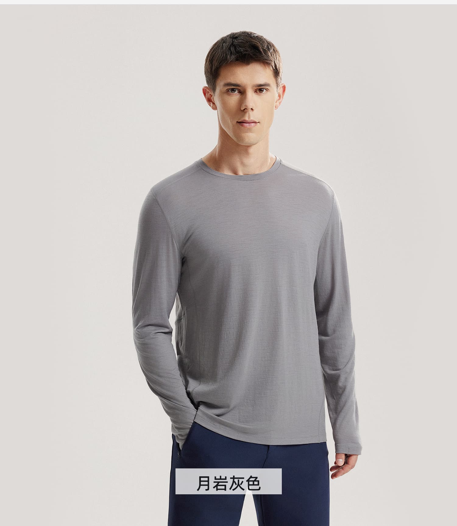 NORTHLAND诺诗兰 男 美利奴羊毛长袖T恤 25秋冬新男户外运动亲肤抑菌透气打底衫 NTSFH5583E 月岩灰色