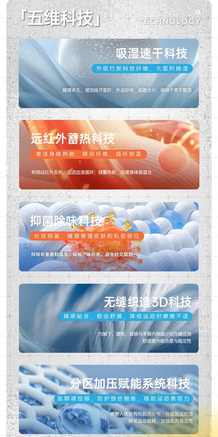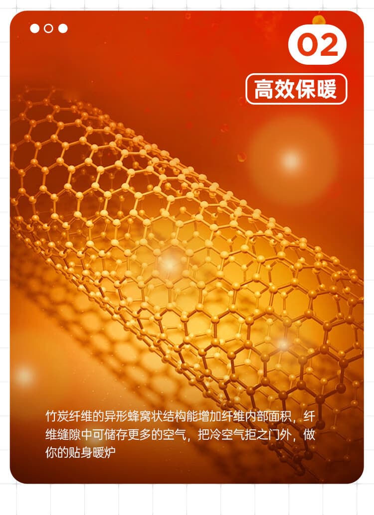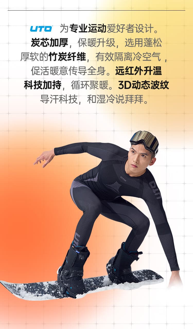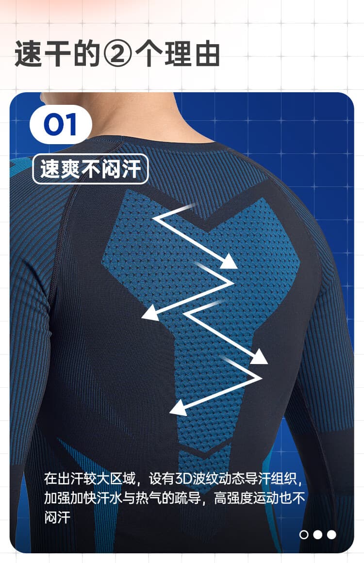 采用自研异性多孔状炭芯纤维面料,搭配3D凹槽导汗结构,快速吸湿排汗并定向疏导,保持体表干爽不粘腻;搭载远红外蓄热科技,炭芯异形蜂窝结构强效锁温,适配低温户外环境;采用意大利无缝一体织造工艺,搭配LYCRA?莱卡高弹纤维,立体剪裁贴合男性身形无束缚,运动灵活且减少皮肤摩擦;具备AAA级抗菌抑味功能,面料亲肤无刺激,耐磨抗起球,多次洗涤不易变形,易清洁打理。