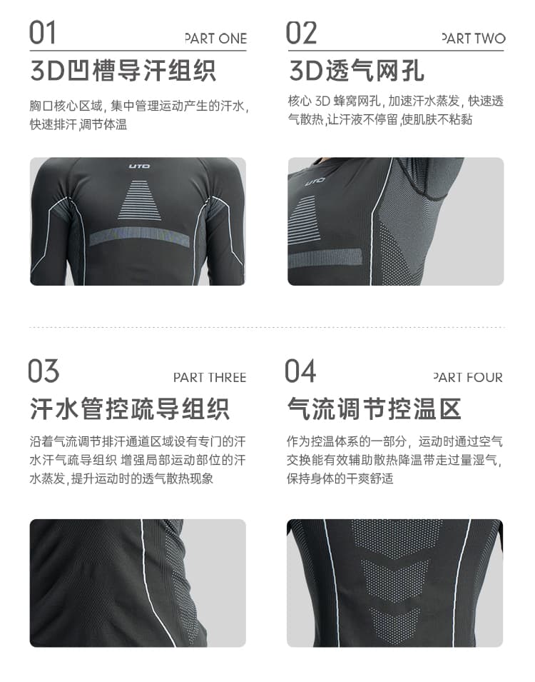 UTO悠途 男士速干套装 压缩速干男户外登山滑雪运动保暖内衣 973102 迷雾灰 UTO悠途新年超级特惠-满128减10-满298减40-满498减70