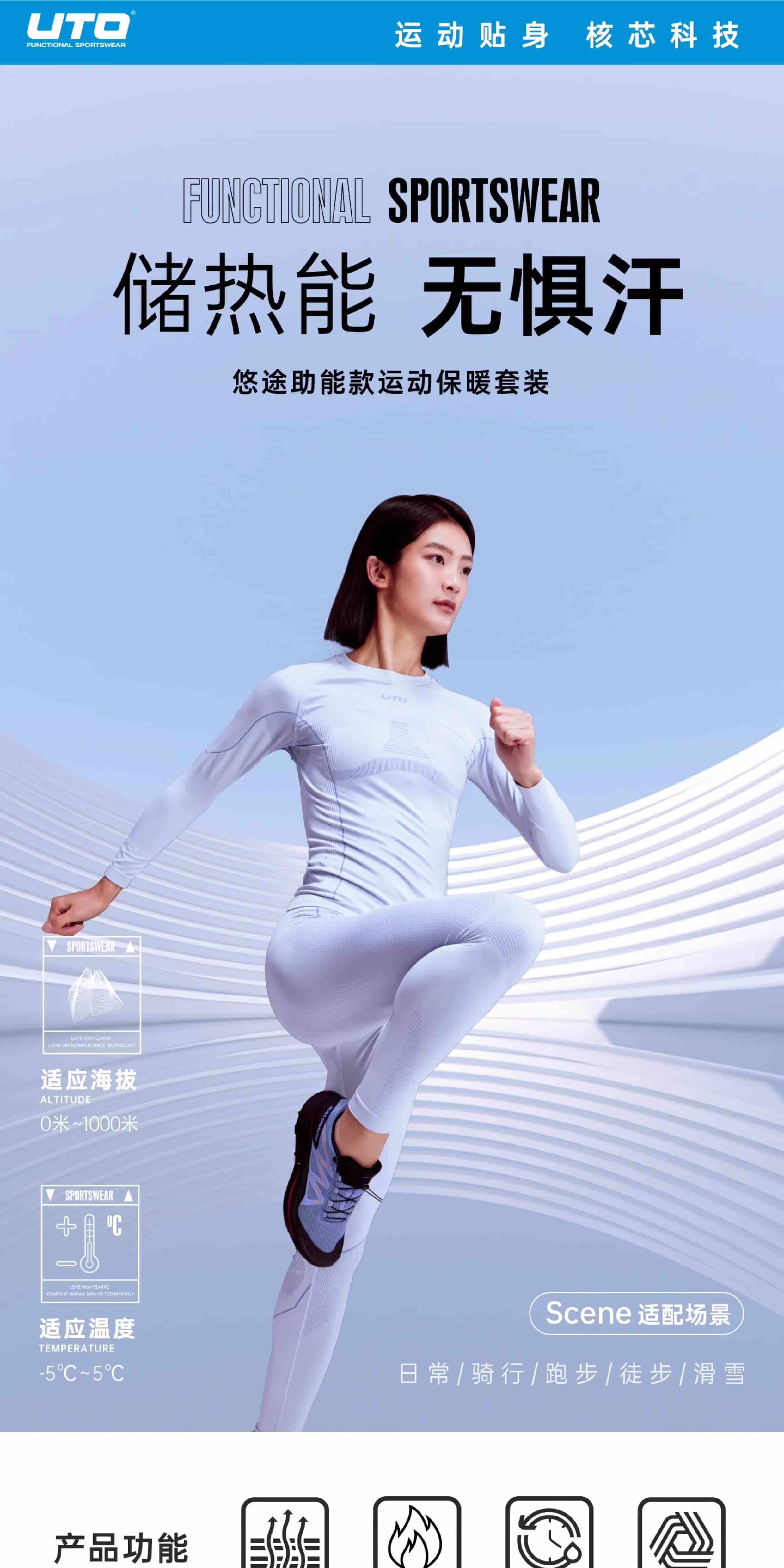 核心适配户外登山、滑雪等运动场景,也可用于徒步、露营、骑行等多元户外出行;兼顾运动保暖与日常打底需求,适配不同户外低温环境与运动强度。