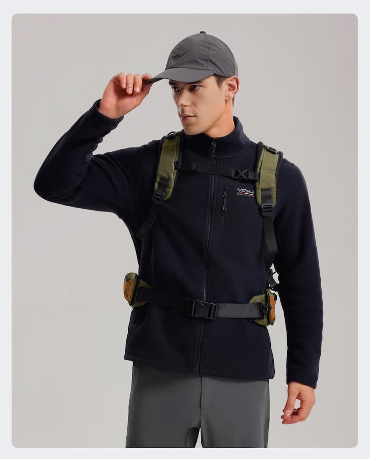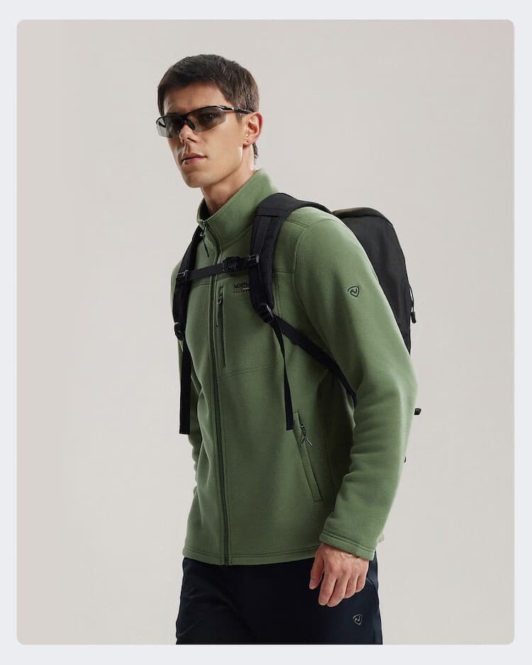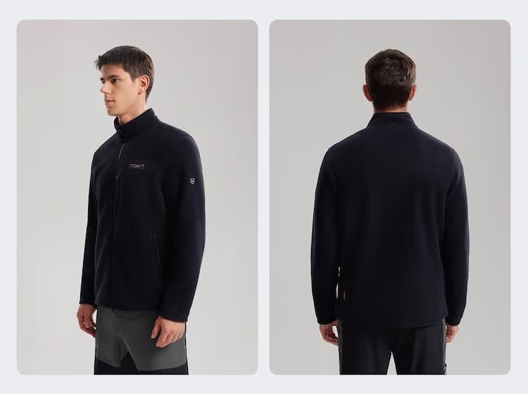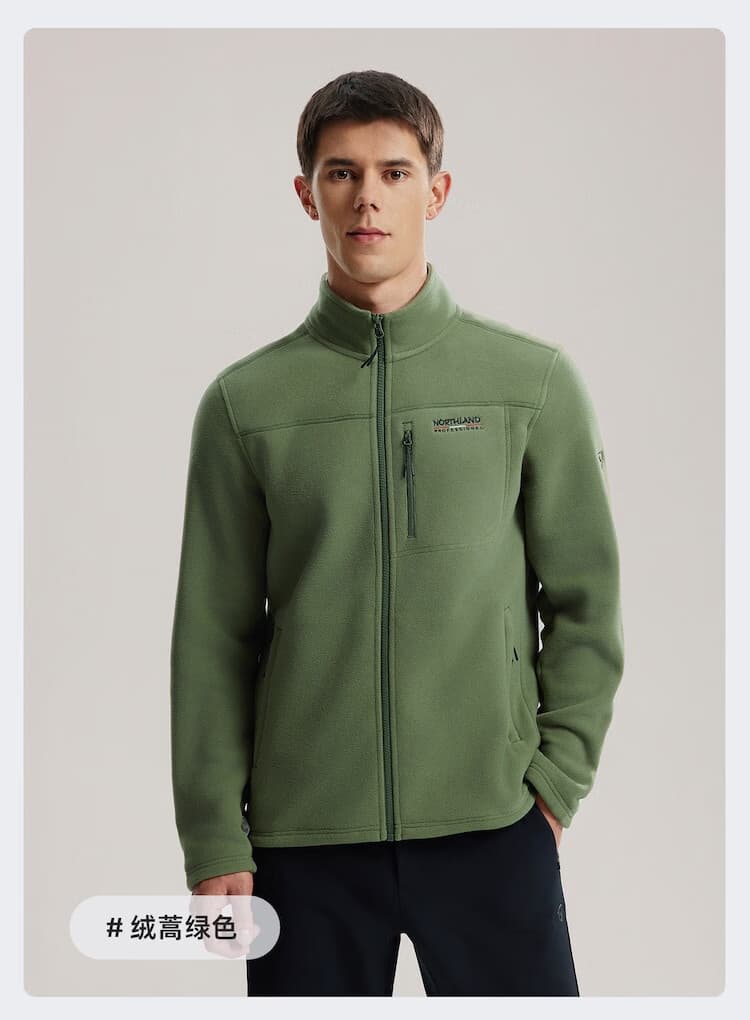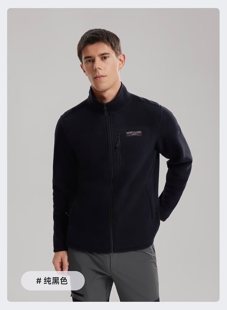 诺诗兰男款立领抓绒衣 NFTFT5581E,纯黑色经典百搭不挑场景。