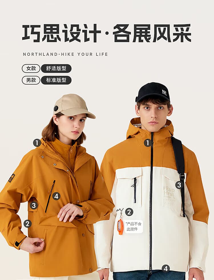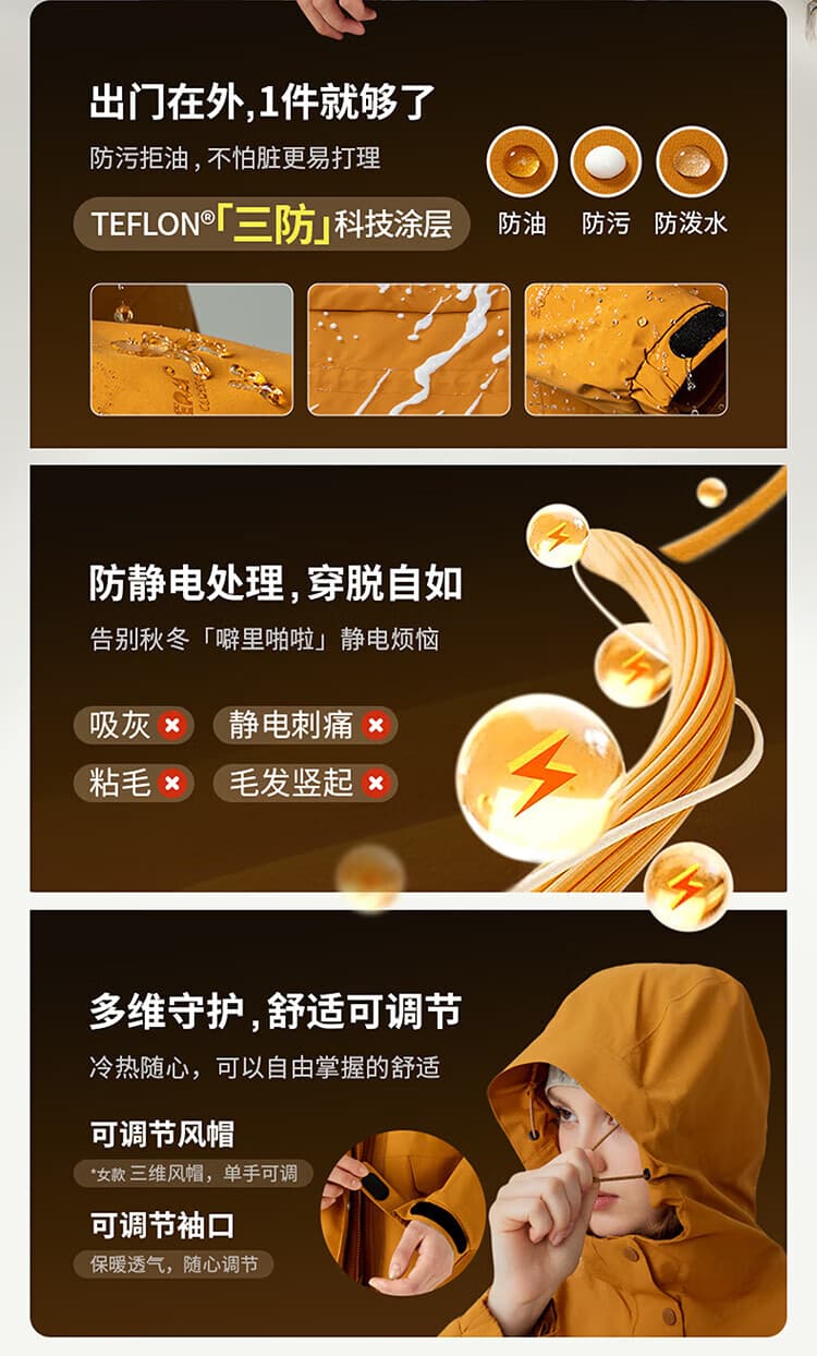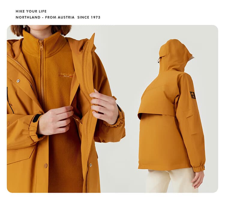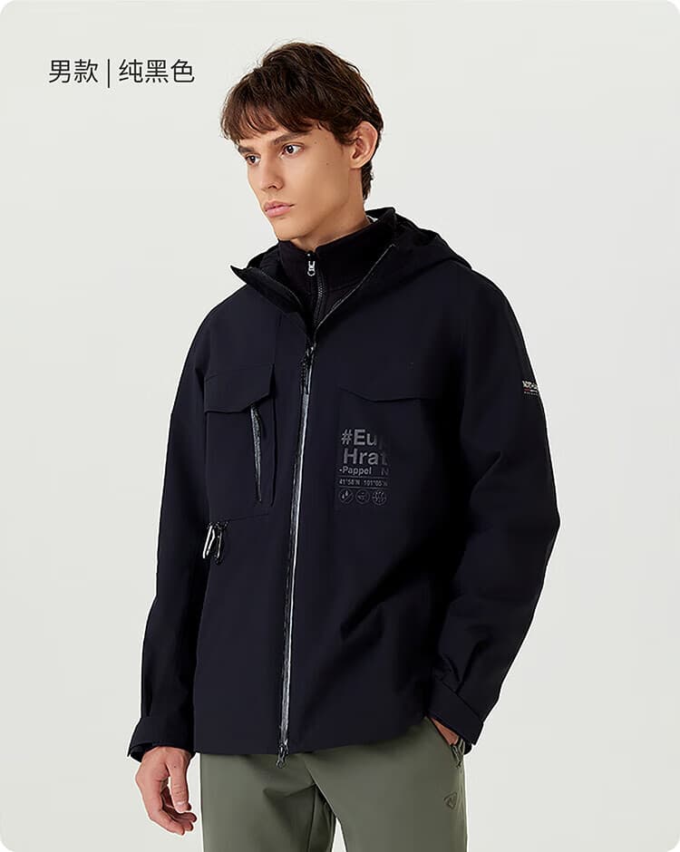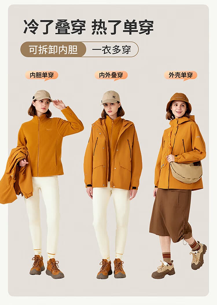 新升级三合一设计,外壳 + 抓绒内胆可拆分,一衣三穿适配多季节。