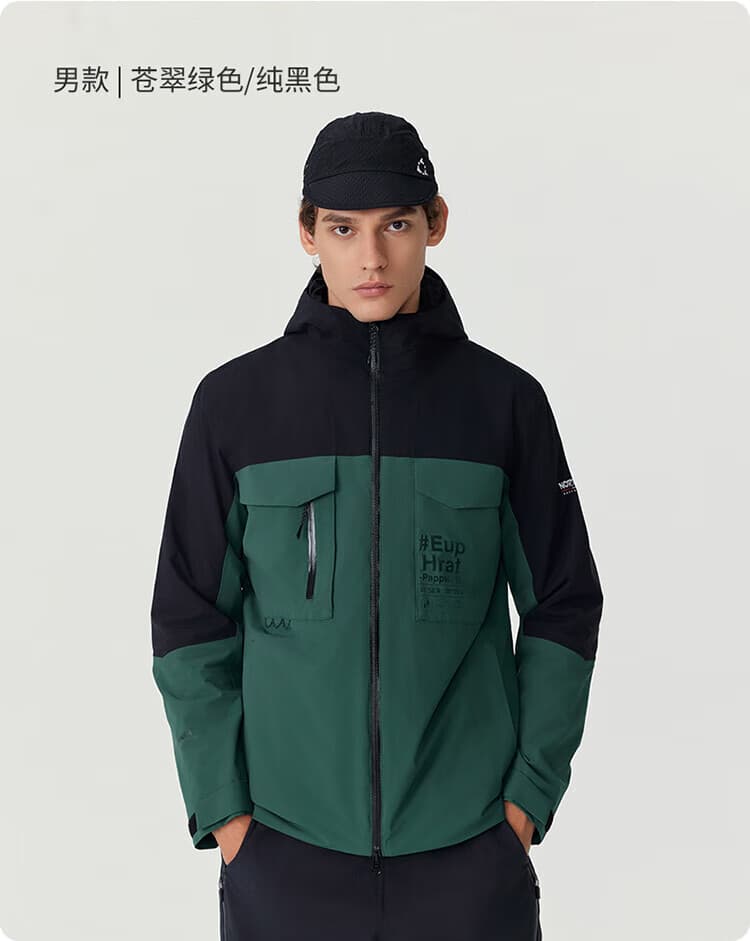 诺诗兰胡杨林 2.0 男款冲锋衣 NWJET0502E,纯黑色沉稳百搭不挑场景。