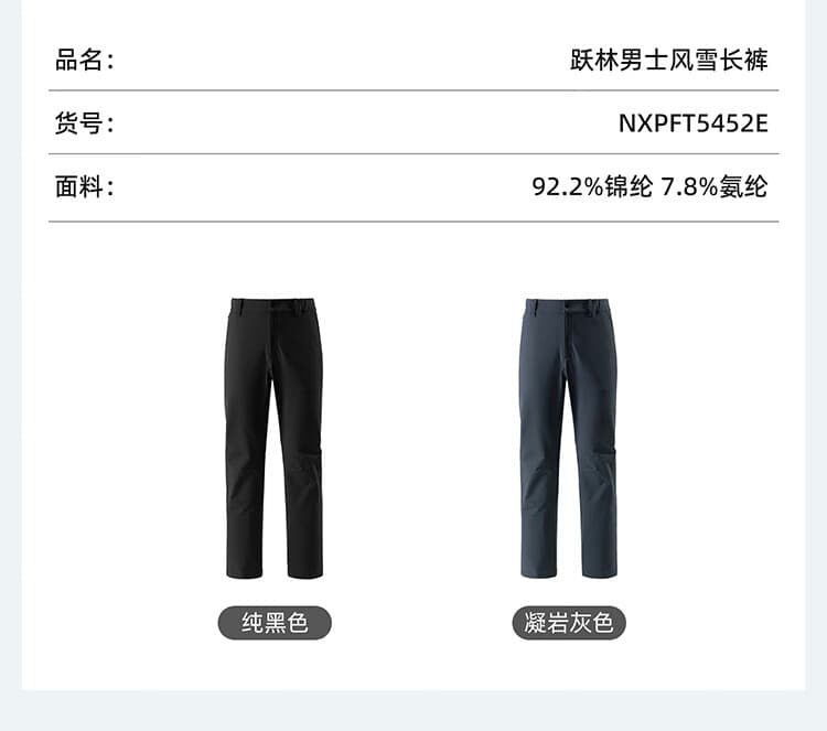 NORTHLAND诺诗兰 男士风雪长裤 白桦林三防男士磨毛软壳裤25新款弹力防风防泼防污长裤 NXPFT5452E 纯黑色