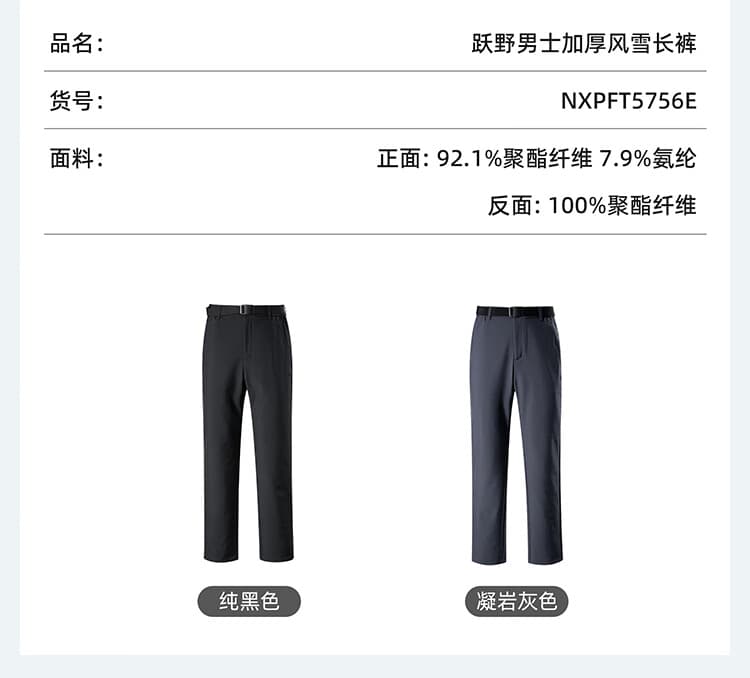 NORTHLAND诺诗兰 男士风雪长裤 白桦林三防男士磨毛软壳裤25新款弹力防风防泼防污长裤 NXPFT5452E 凝岩灰色