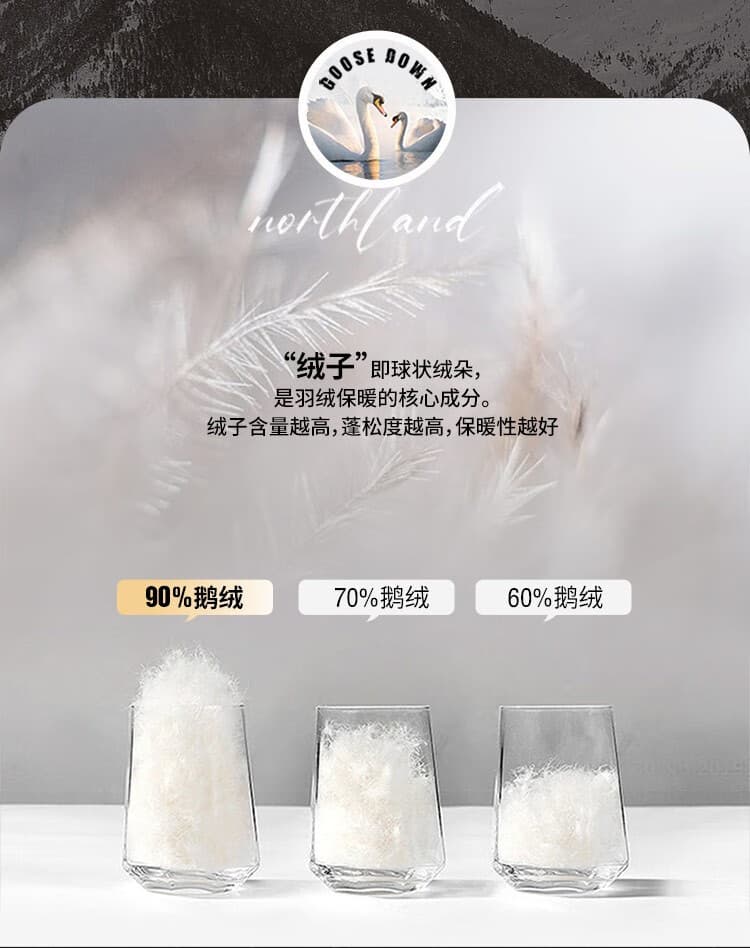 90% 高蓬白鹅绒填充,绒朵饱满蓬松。