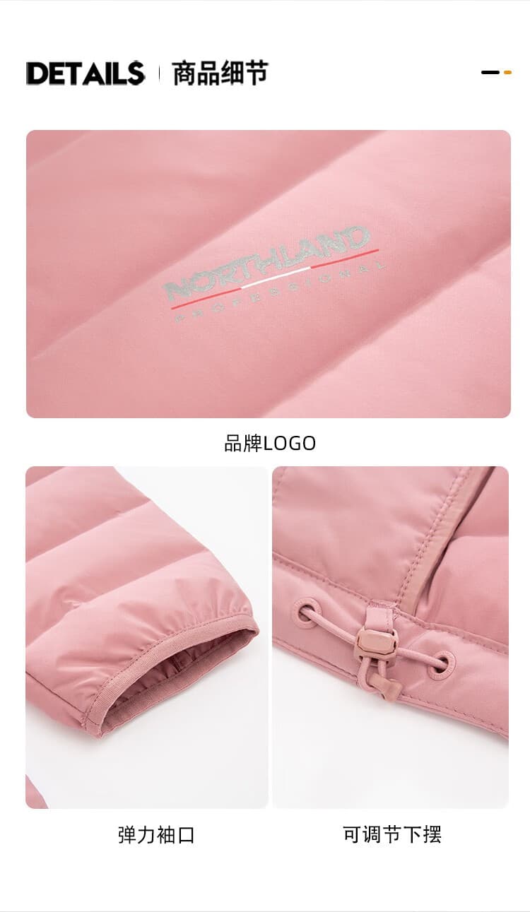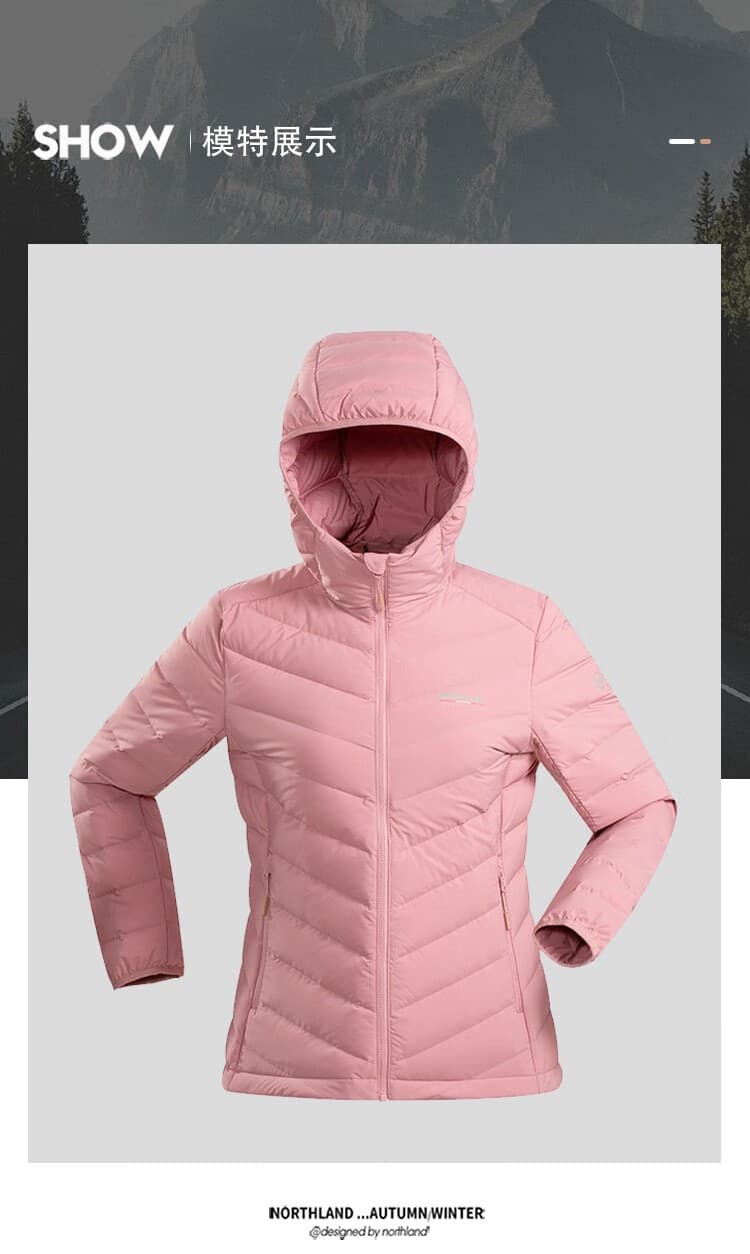 NORTHLAND诺诗兰 女款羽绒服 秋冬户外女士鹅绒羽绒服 简约纯色轻量保暖羽绒外套 NDJDH2752S 浅绯粉色