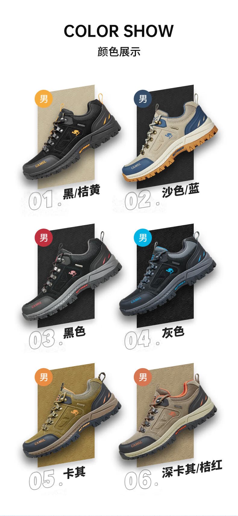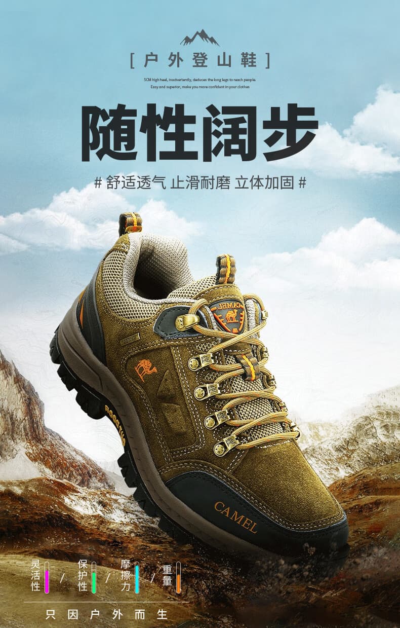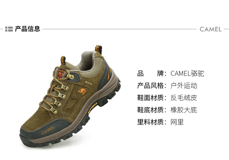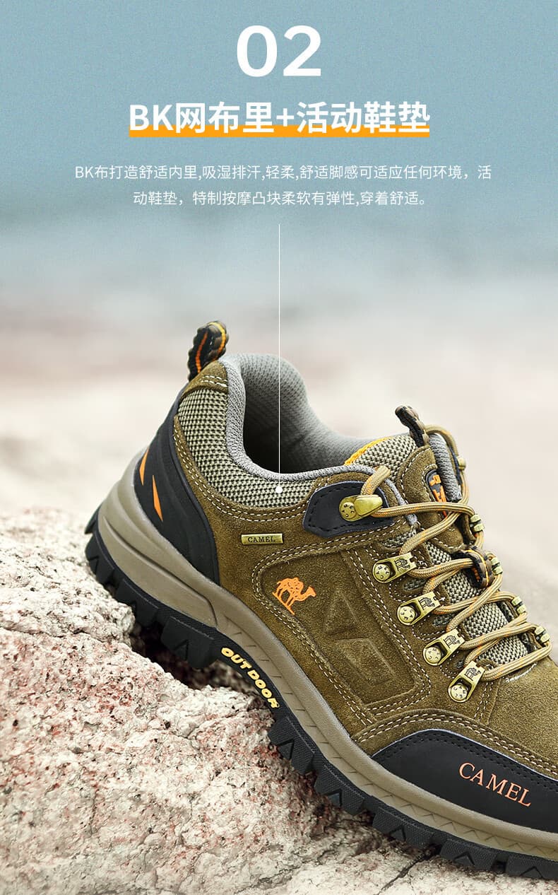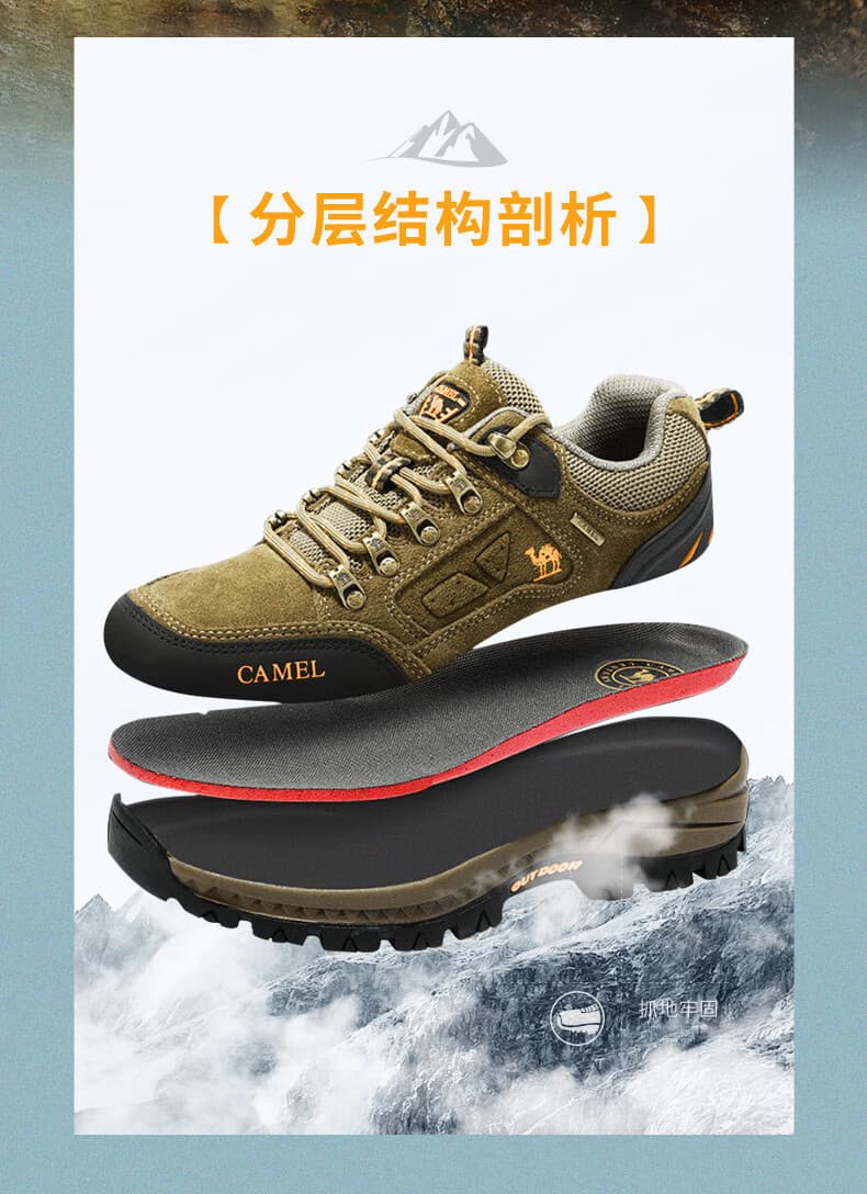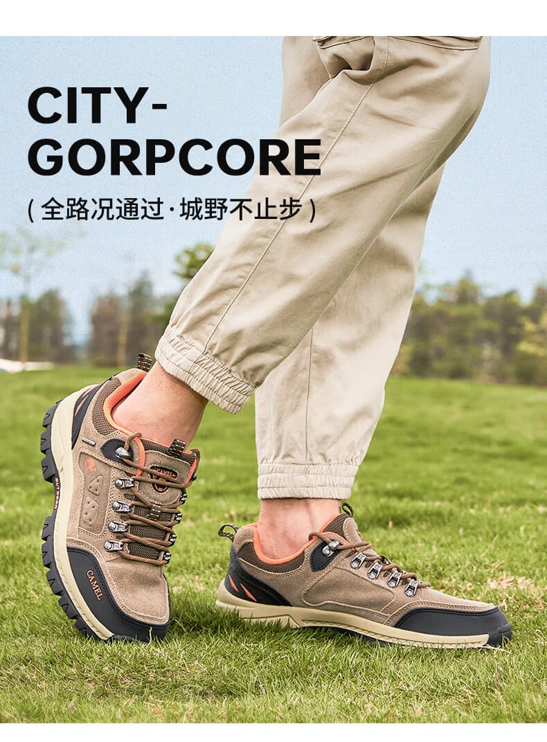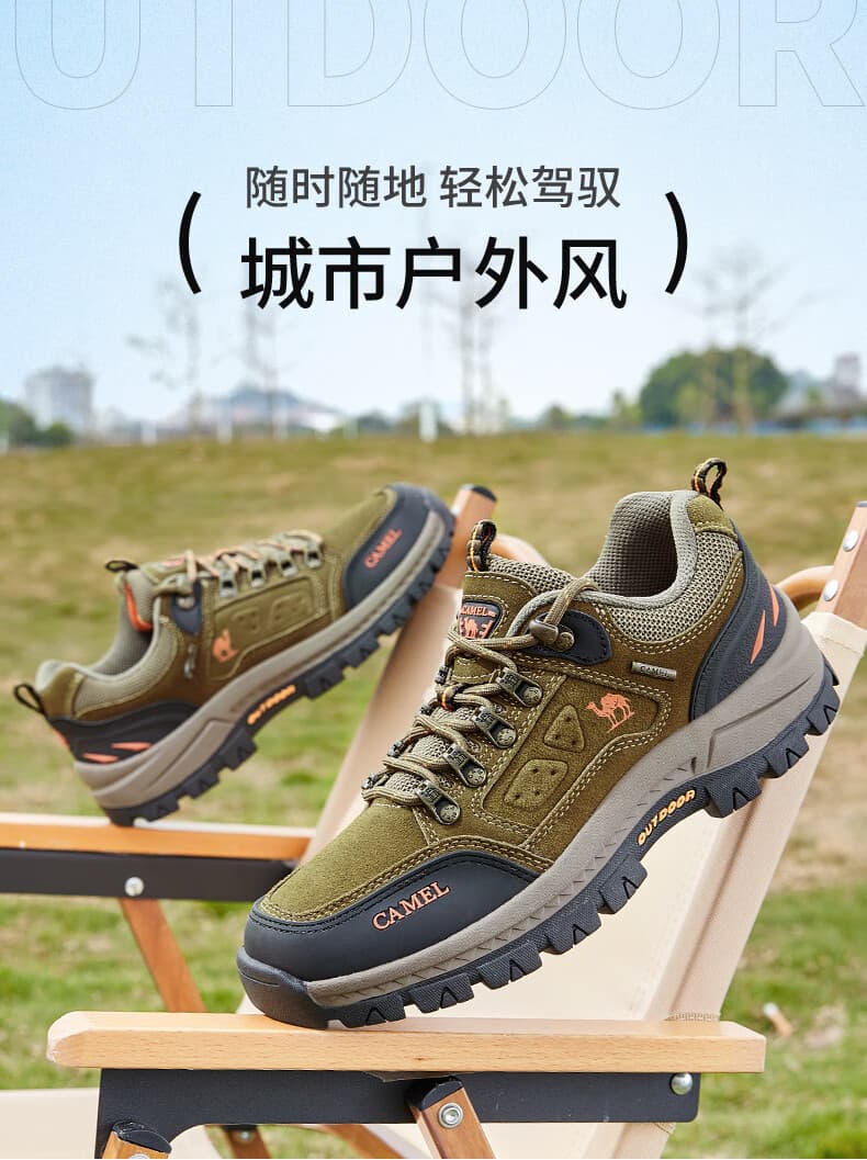 骆驼男款徒步鞋 A632026925H,卡其色经典大气,户外日常穿搭皆适配。