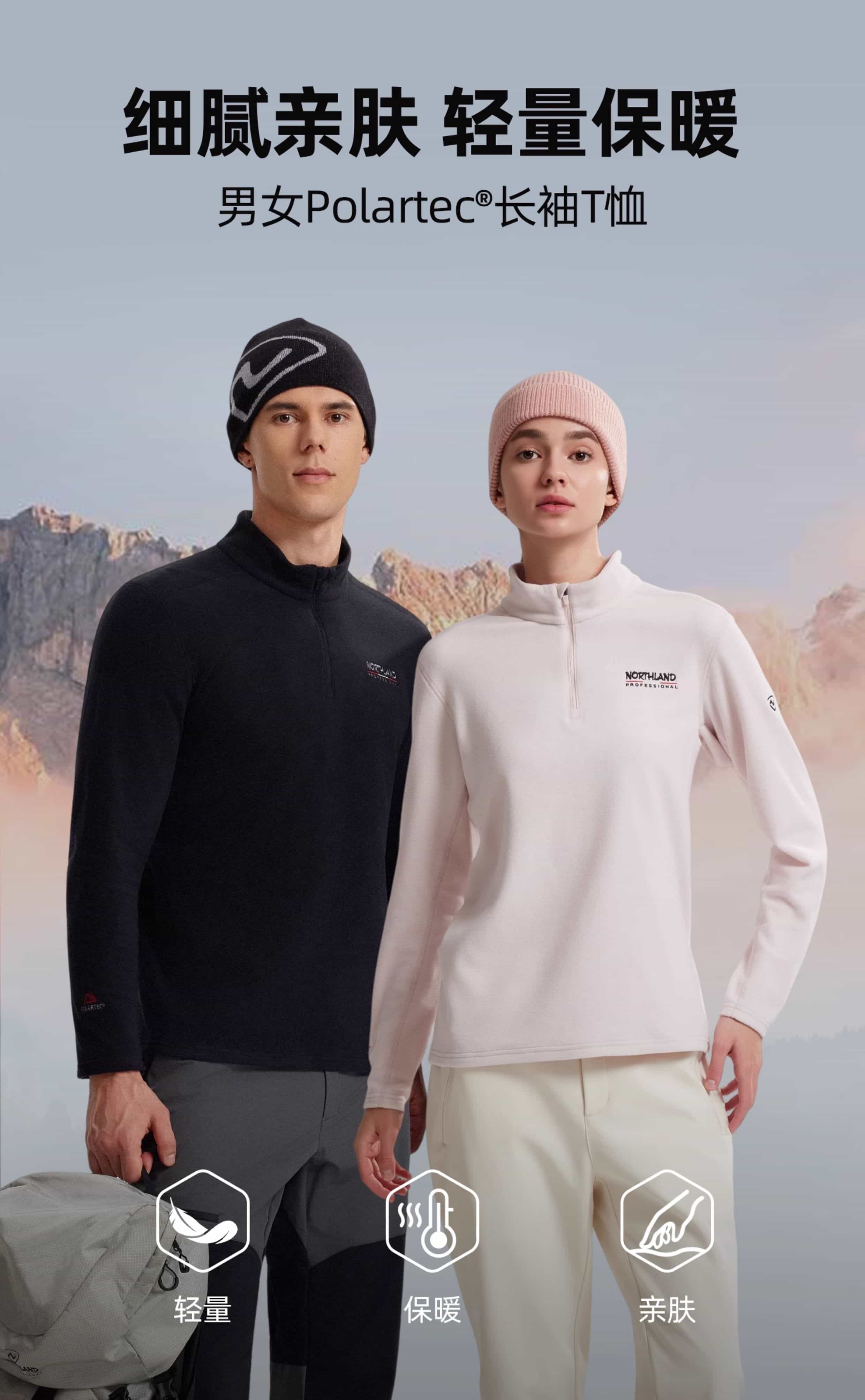 NORTHLAND诺诗兰 男女款长袖 T恤立领男女25秋冬 新户外吸湿透气内搭POLO衫徒步登山 NTSFH0584E 纯黑色
