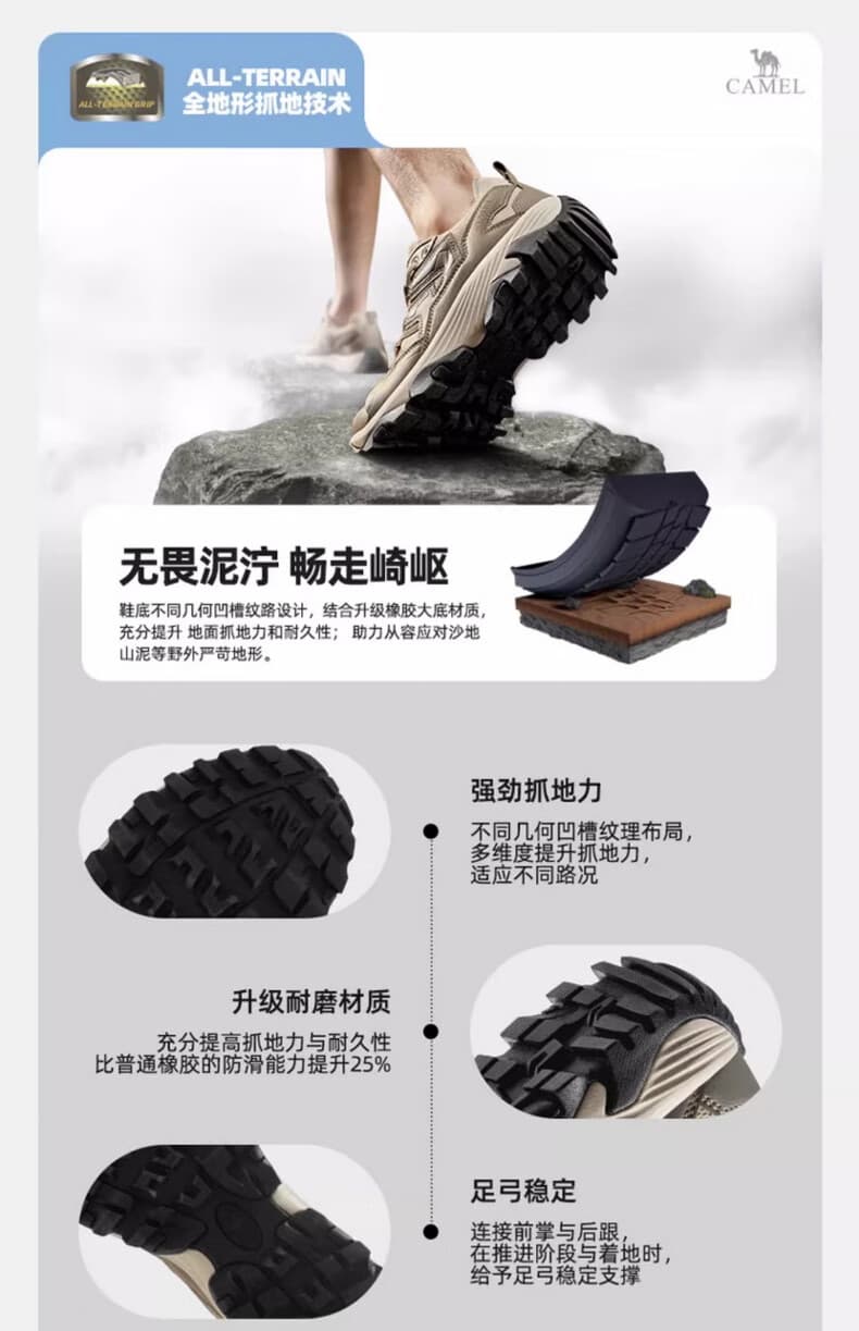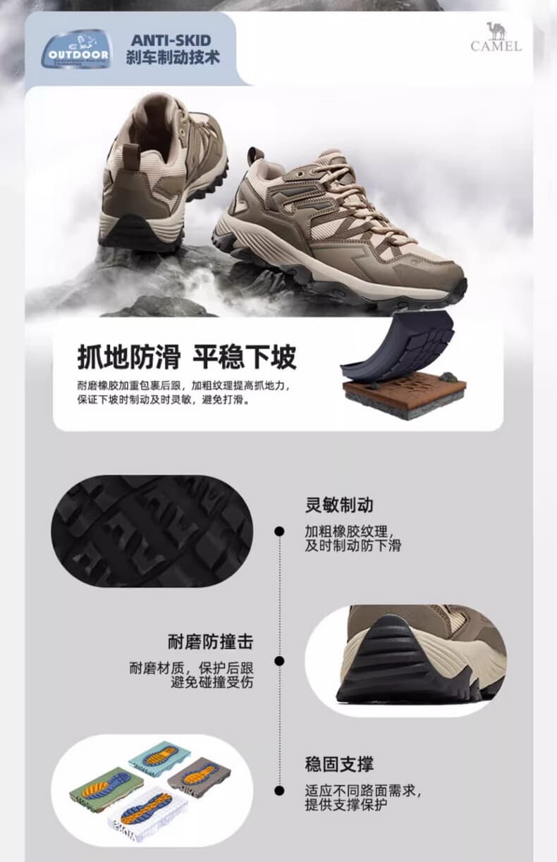 这款集抓地防滑、防水透气、缓震支撑于一体的登山鞋。