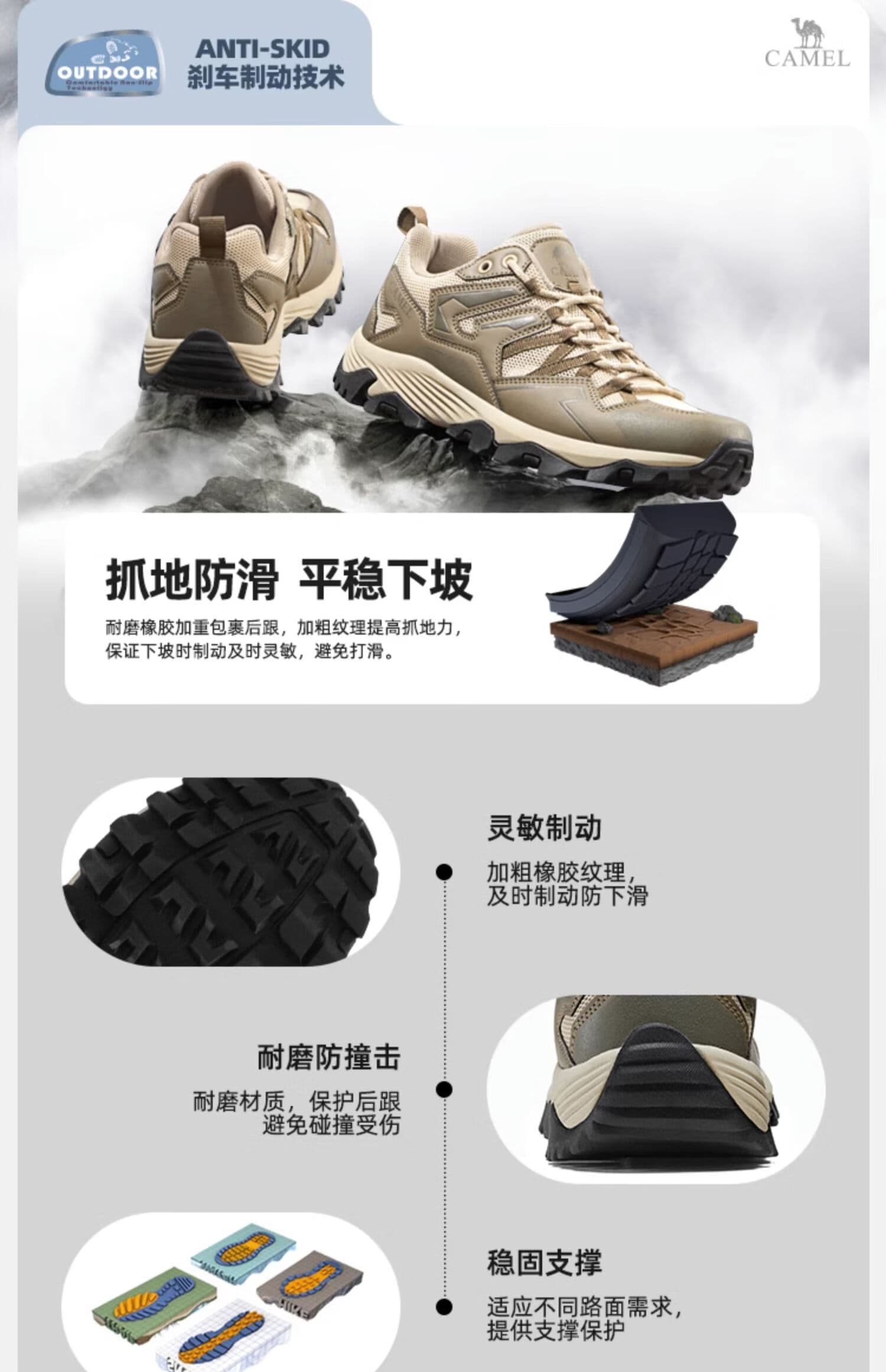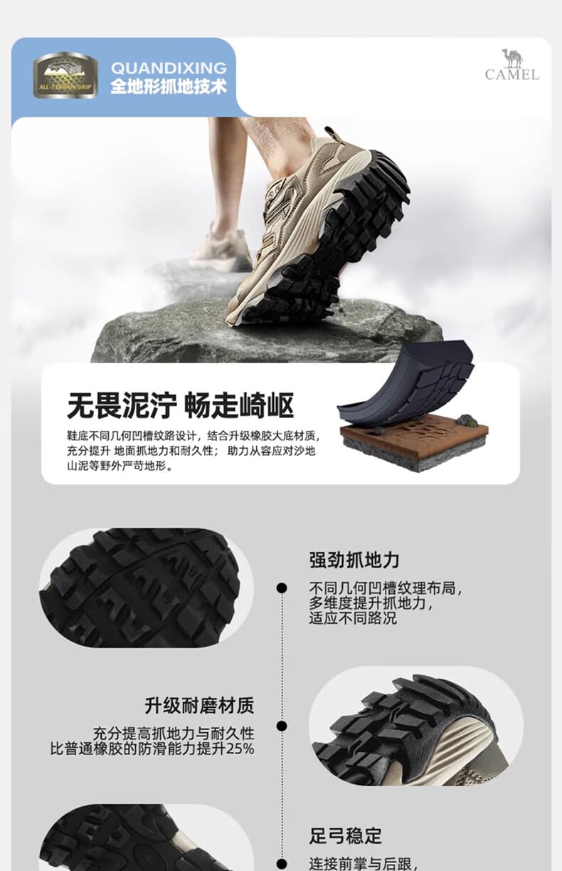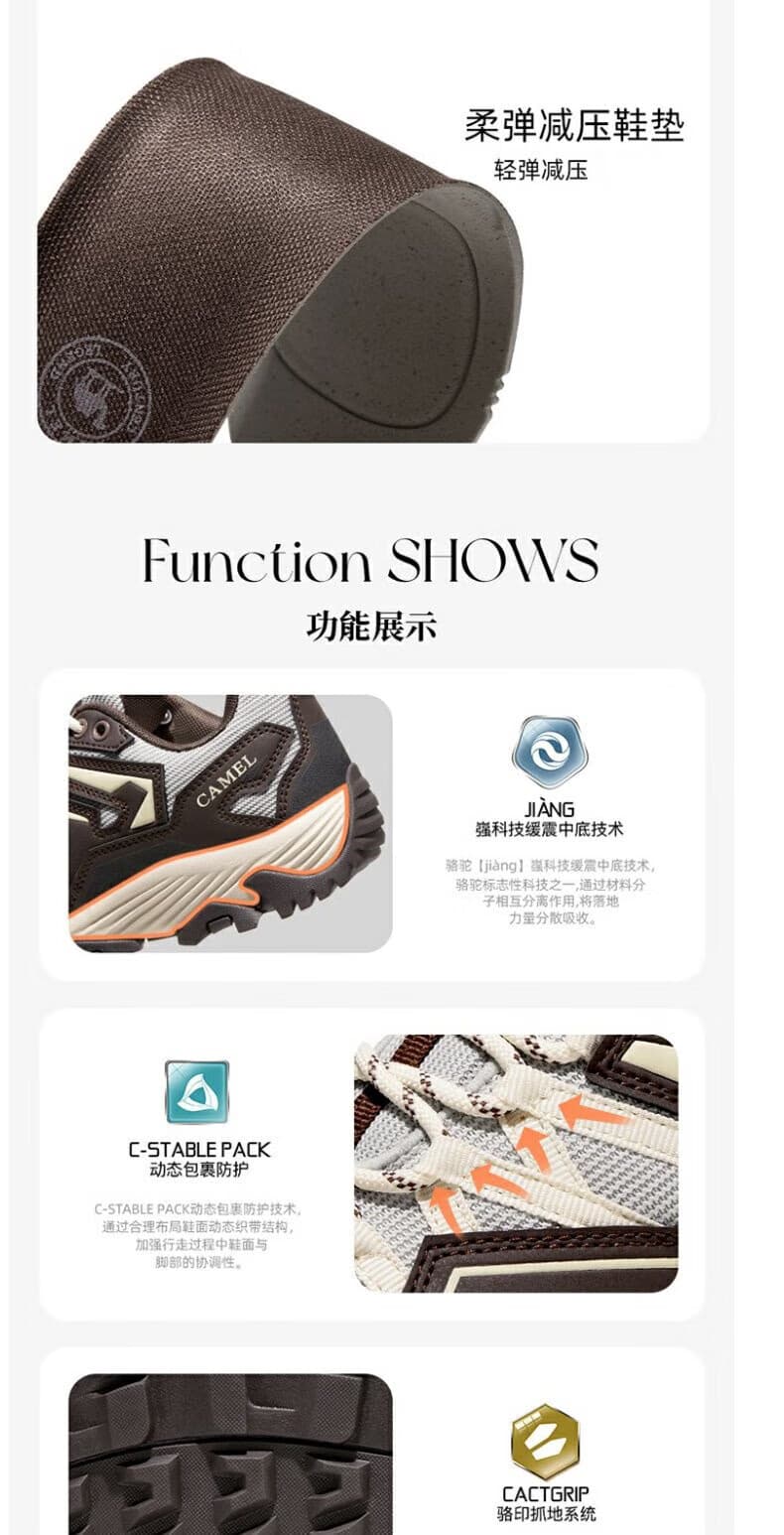这款集抓地防滑、透气缓震、轻便百搭于一体的登山鞋。