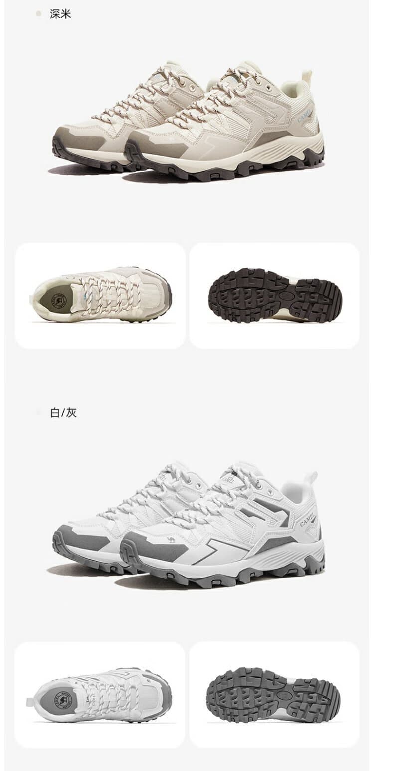 骆驼女款昆仑山登山鞋 F23A693028,白 / 灰配色清新简约,户外日常两相宜。