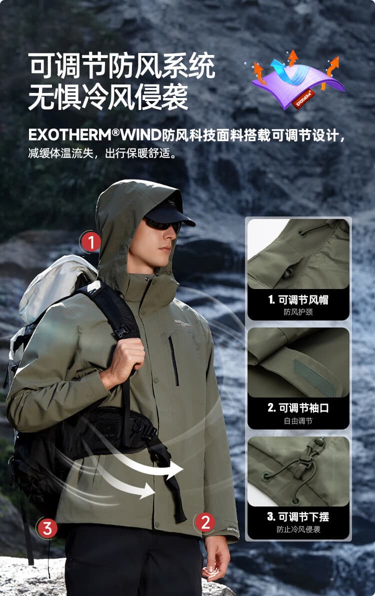 适配春秋季徒步?⒌巧健⒙队⒊鞘型ㄇ诙喑【啊?br/>叠穿抓绒或?E?衣?捎Χ缘臀禄肪场?br/>这款集防风、防水、透气于一体的专业外套。
