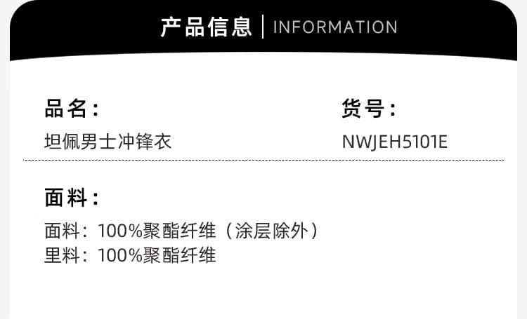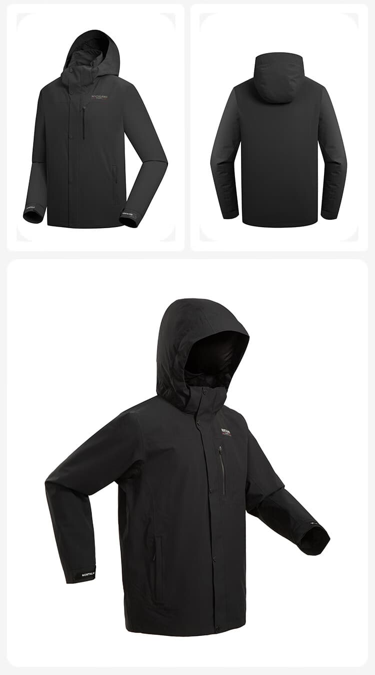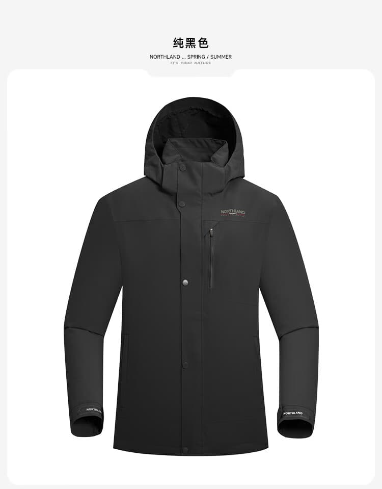 诺诗兰男款单层冲锋衣,纯黑色经典耐脏超百搭。