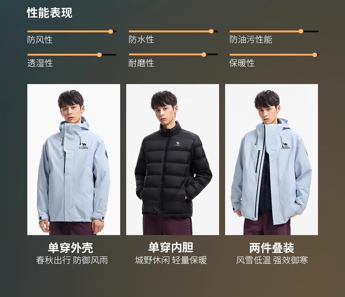 可单穿外壳、单穿内胆或组合穿,三种穿法灵活切换。