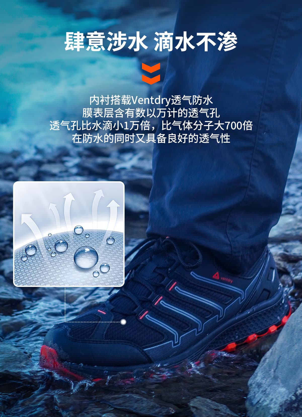 暴雨级防水袜套:搭载Ventdry透气防水膜,全包裹防护,雨天、涉水皆能保持鞋内干爽,防水透气兼顾。