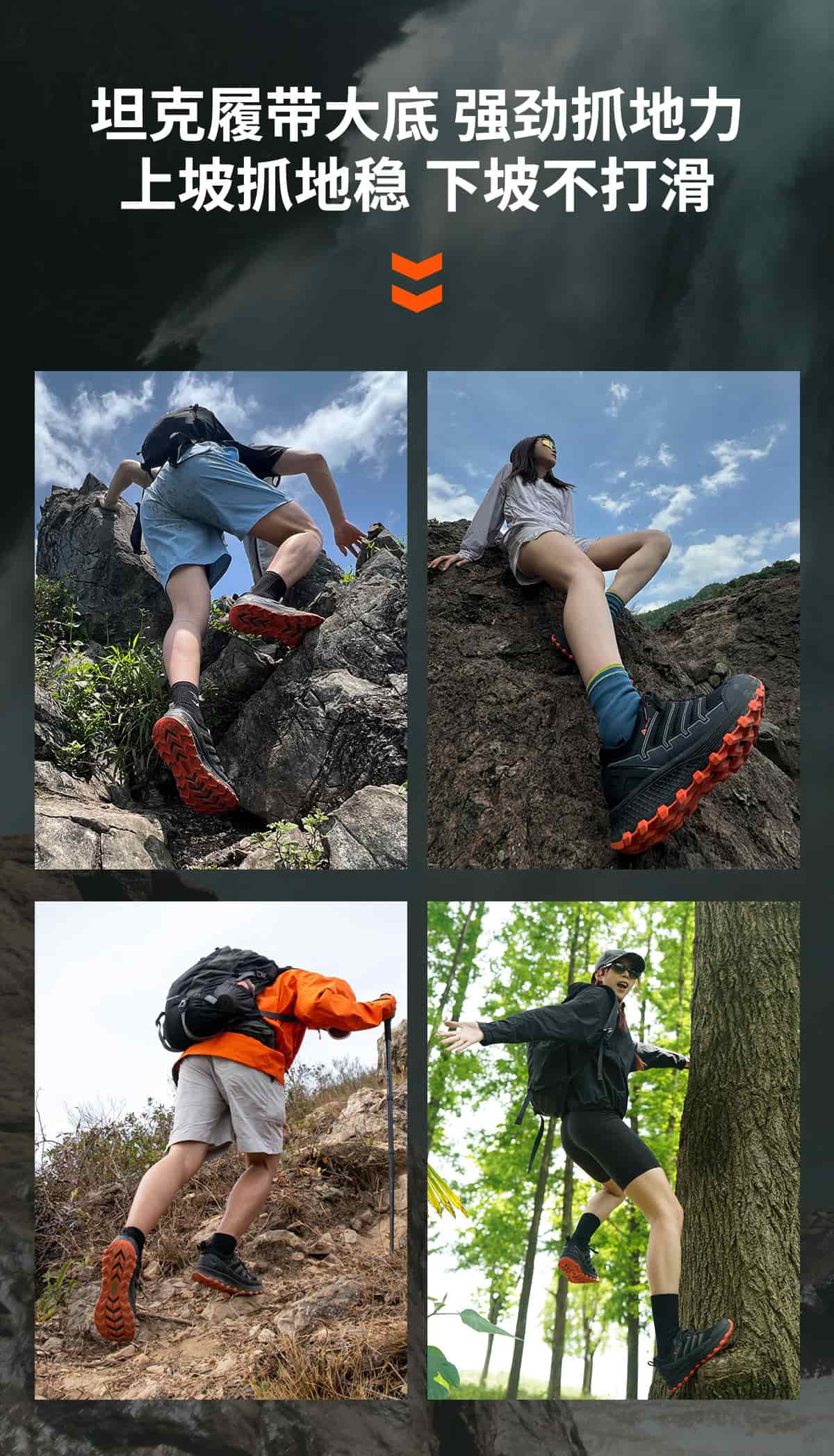 男女户外爱好者:男女同款,暴雨级防水+全地形防滑,适配各类户外徒步,安全实用。