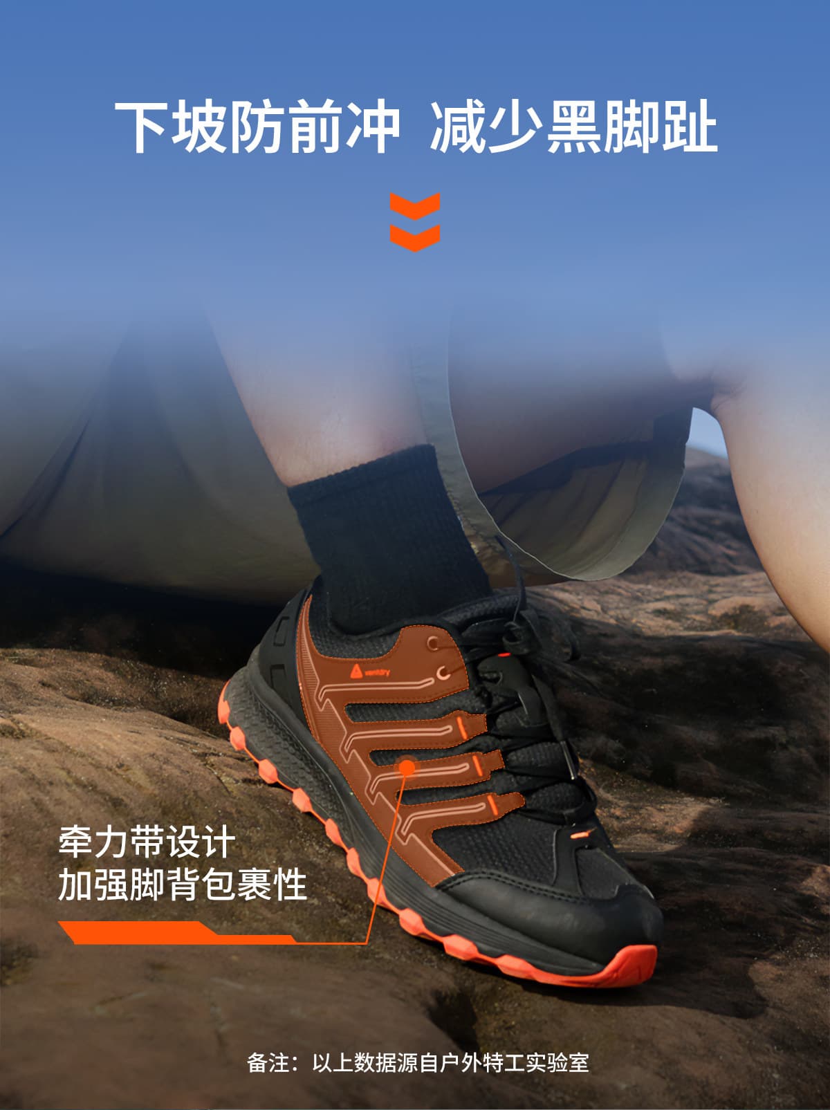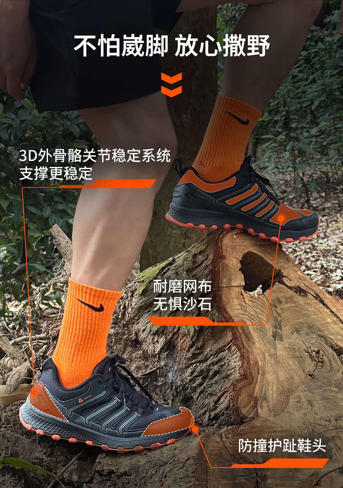 耐磨防刮鞋面:高韧性材质抵御岩石摩擦、树枝剐蹭,不易破损,兼顾防护与耐用。