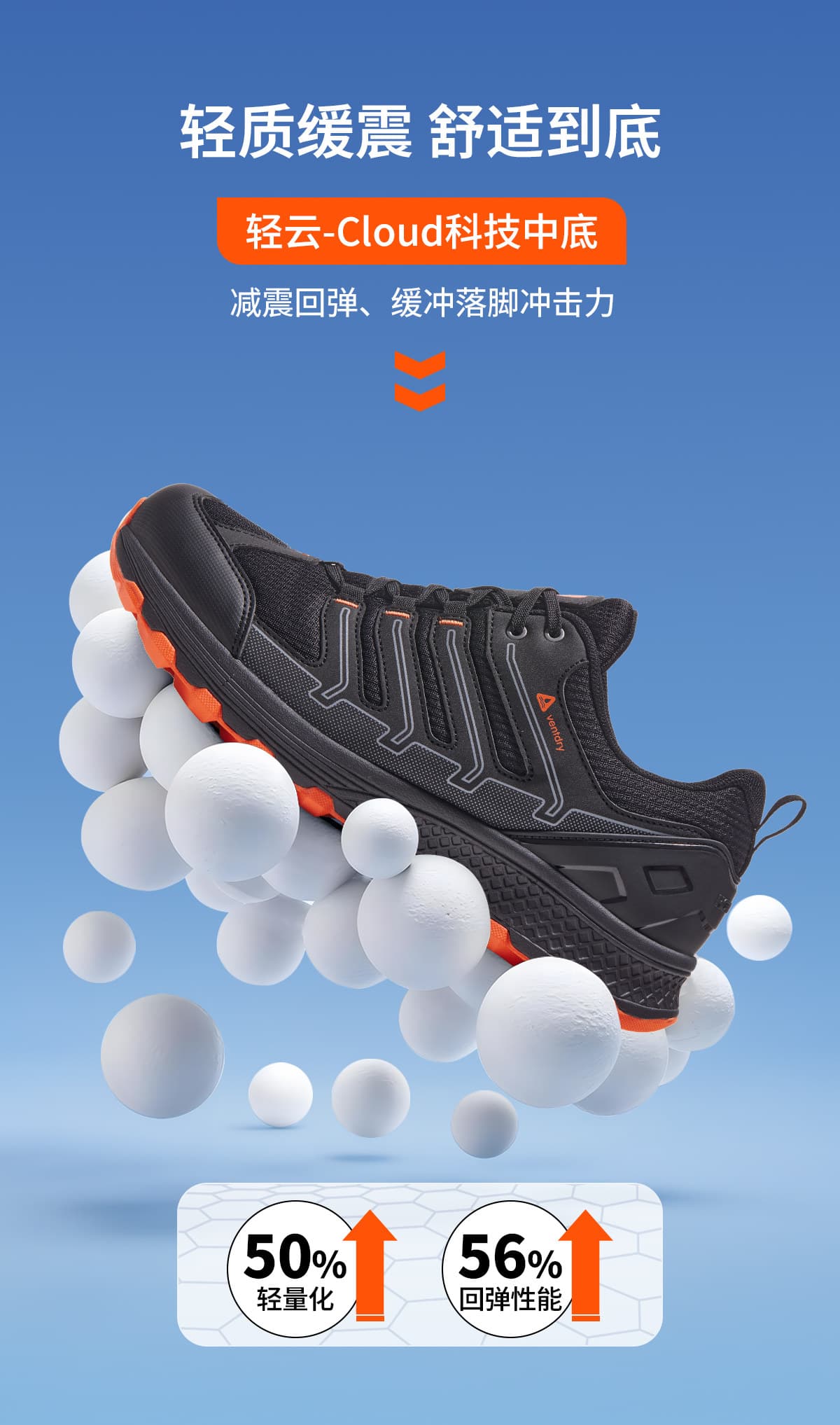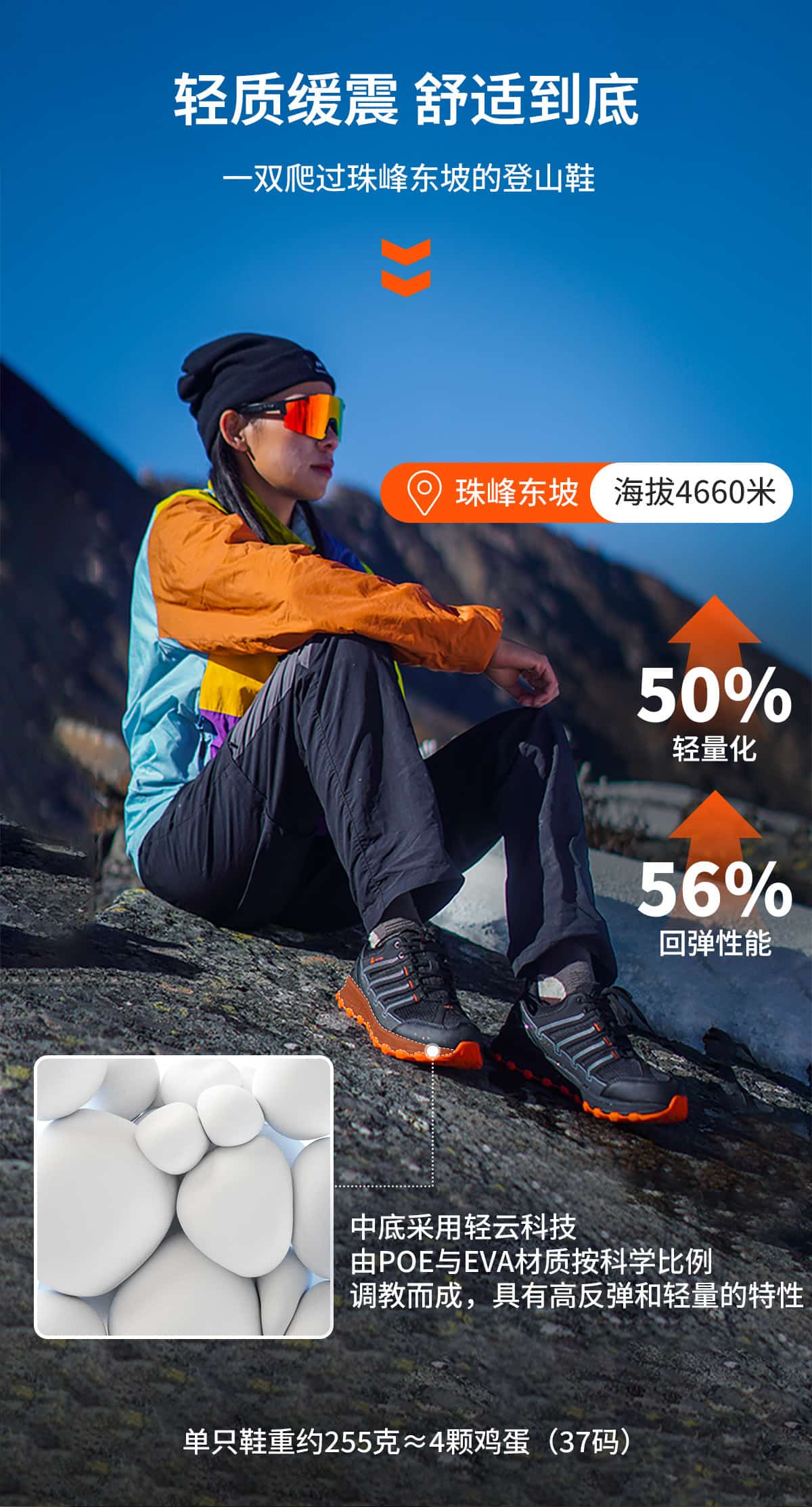 轻云-Cloud中底:缓冲路面冲击力、减轻脚膝负担,长线徒步不累脚。