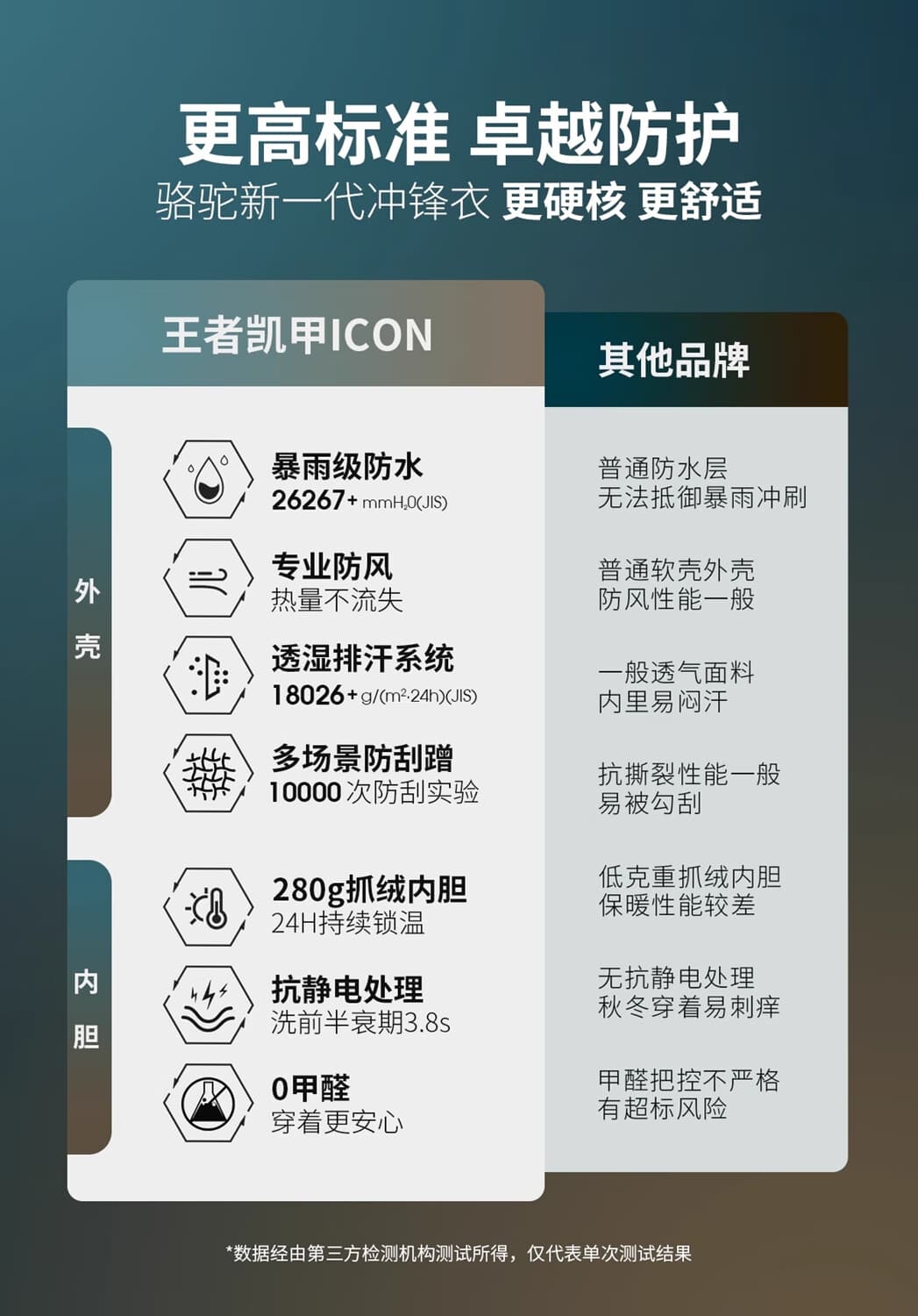 专业防风防水面料 + 全压胶工艺,暴雨大风无缝可入。