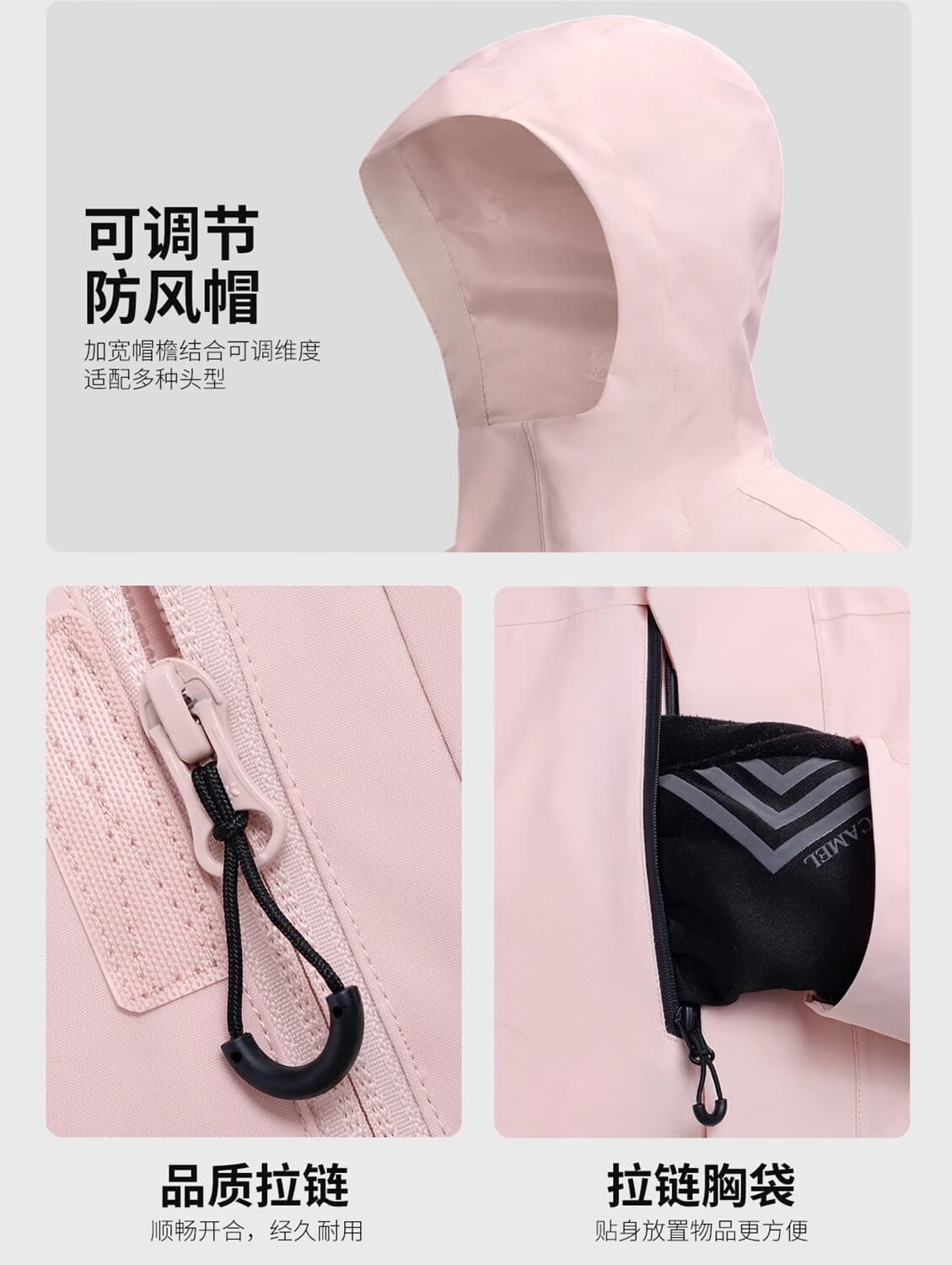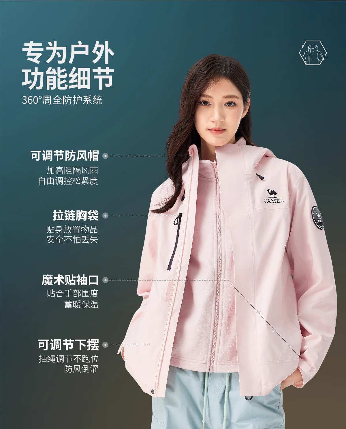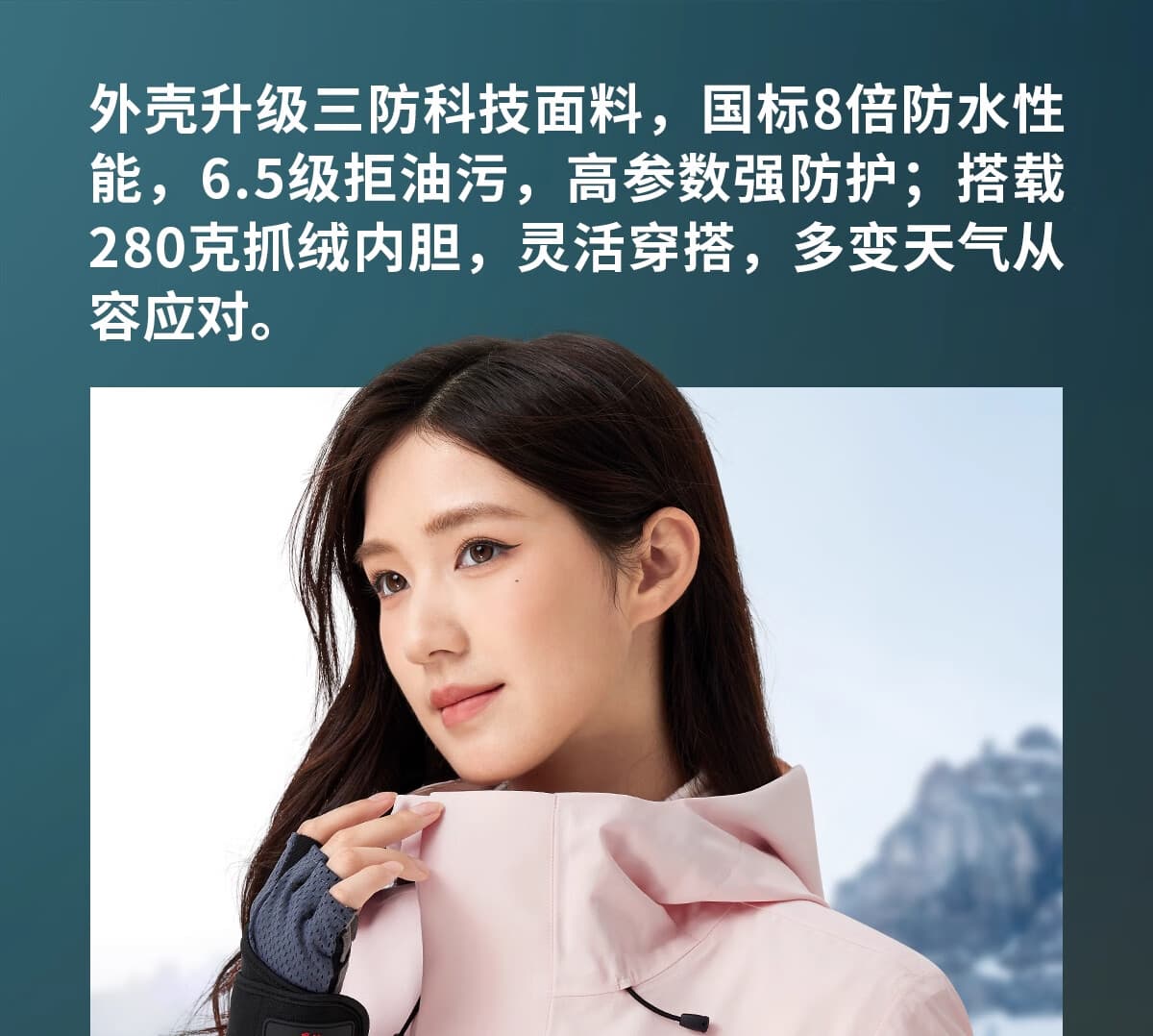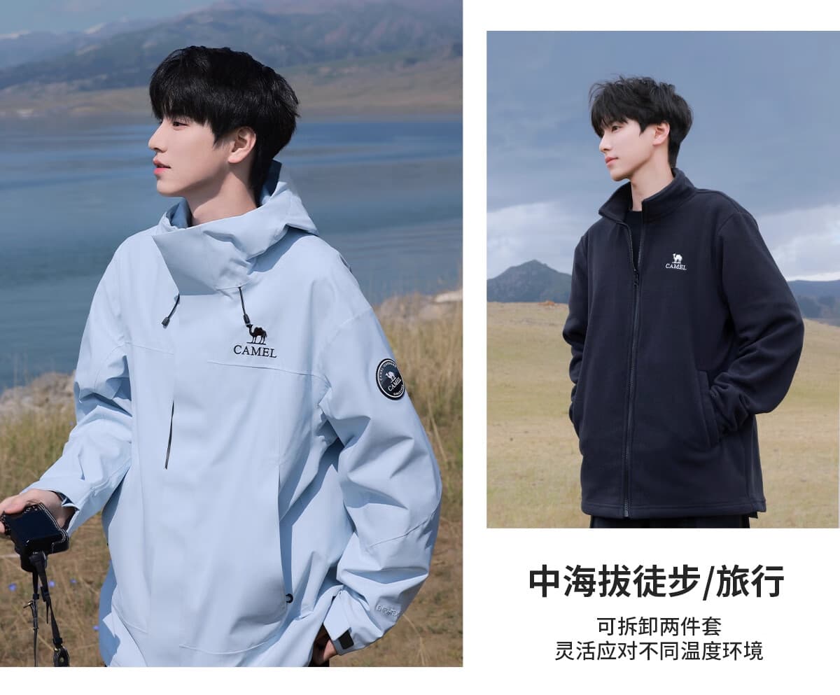 一衣三穿适配四季户外,高蓬鹅绒填充锁温,严寒天气保暖不臃肿。
