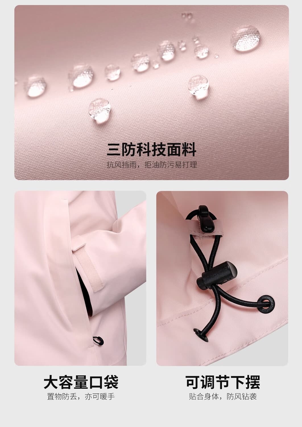魔术贴收紧袖口 + 下摆抽绳设计,随心调节防护更严实。