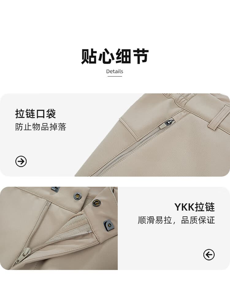 膝盖提拉剪裁设计,久坐久蹲后不易鼓包变形,兼顾实用性与耐用性。