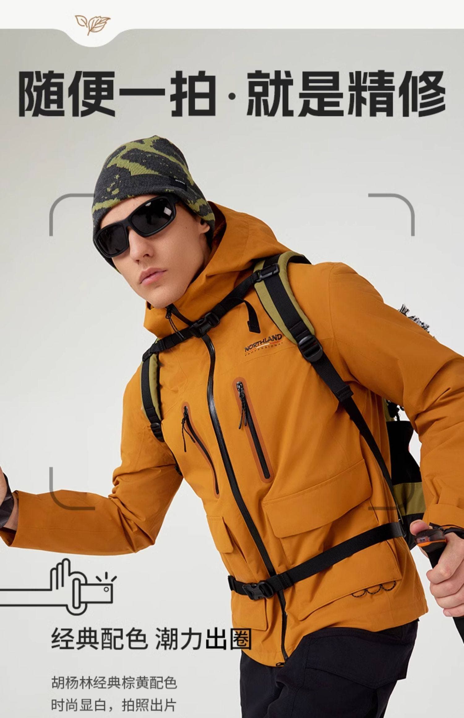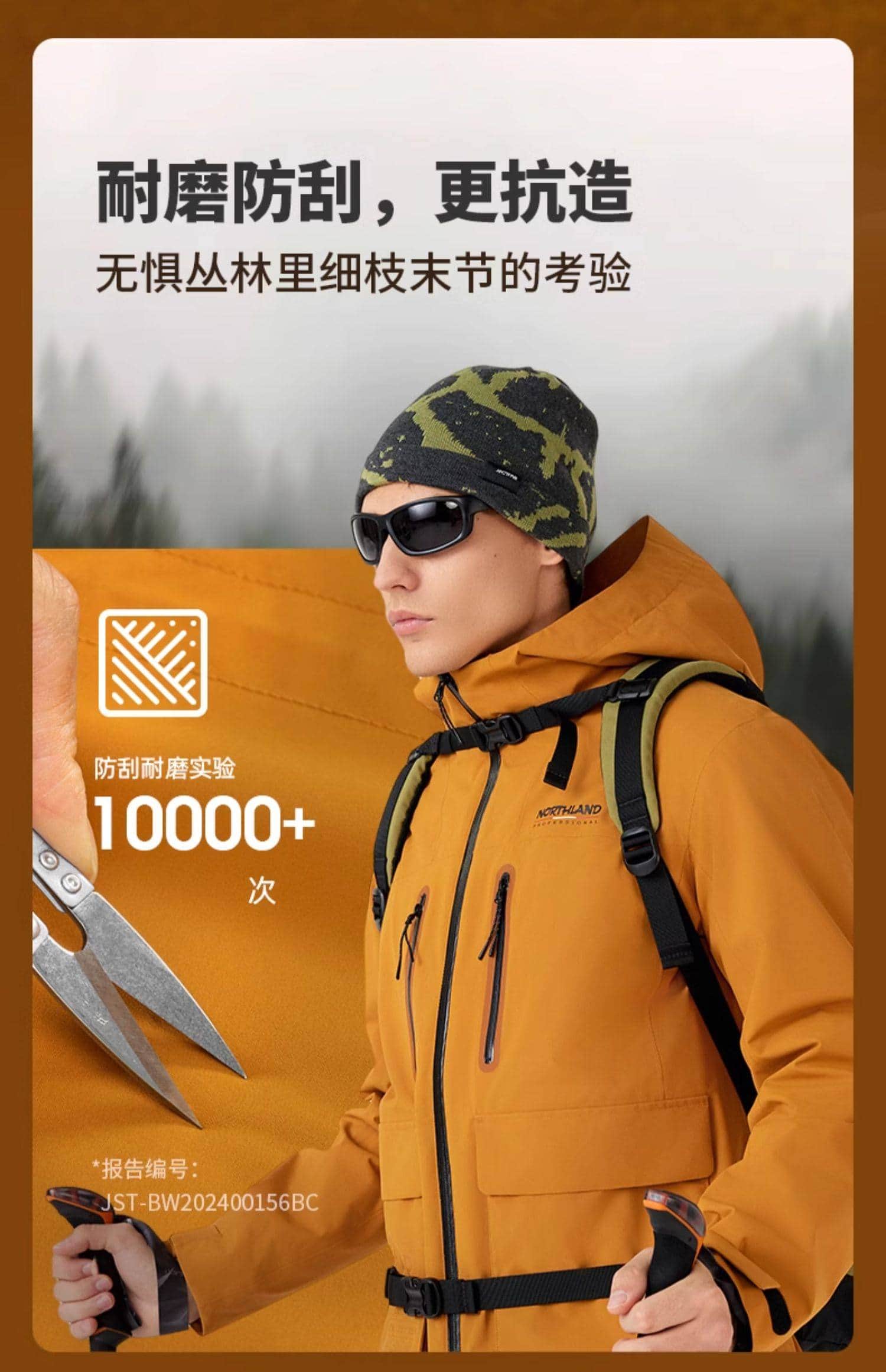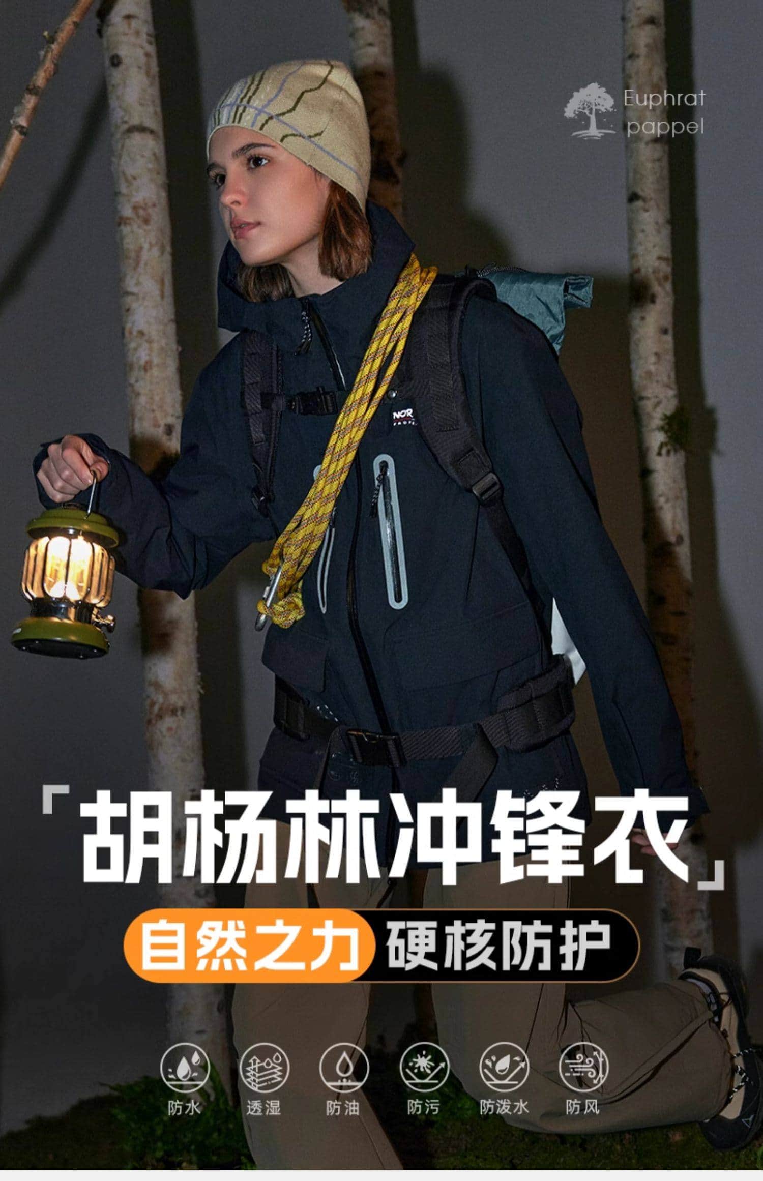 专业防风防水,防水指数 18000mmH?O,暴雨环境保持干爽