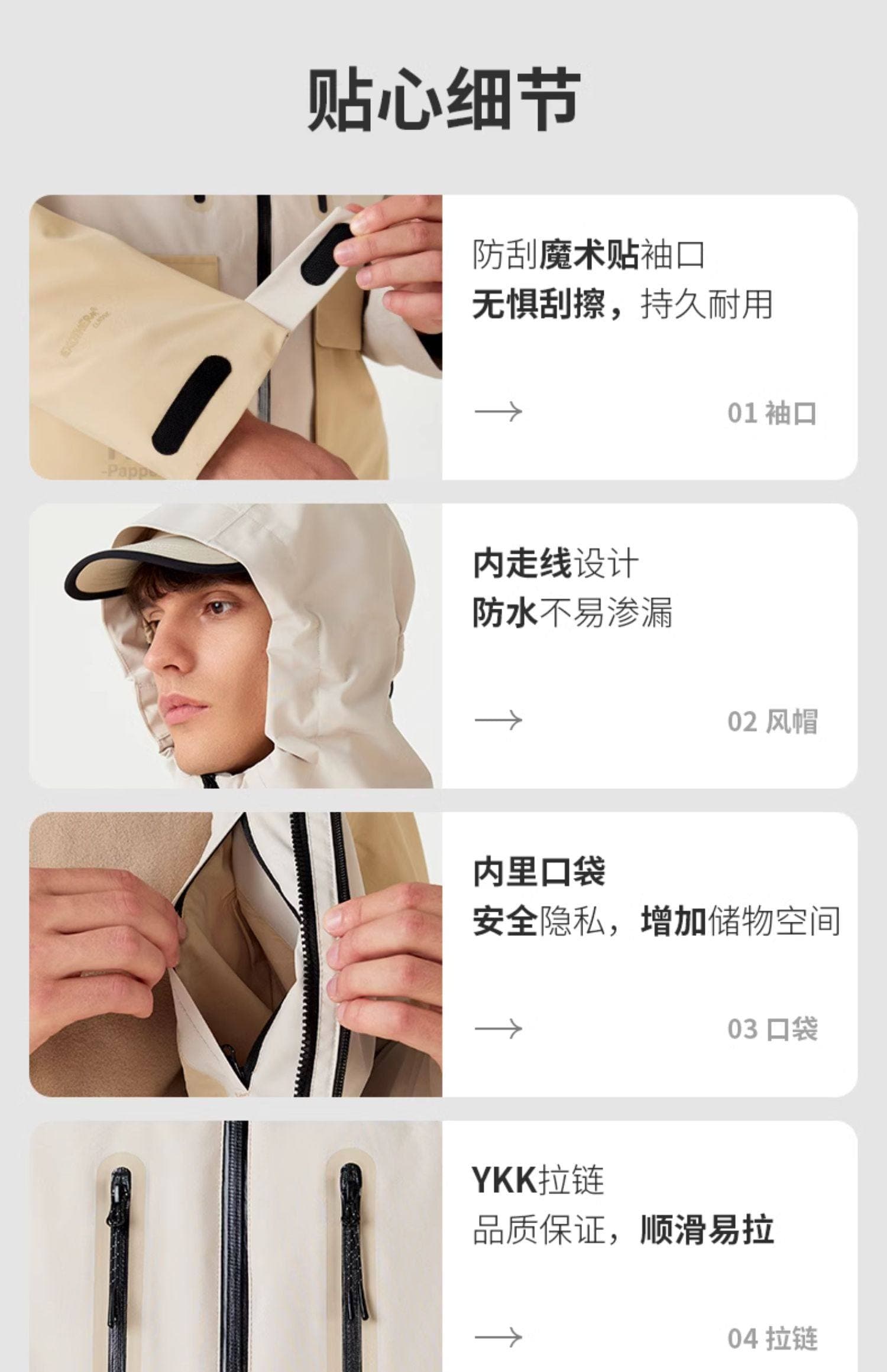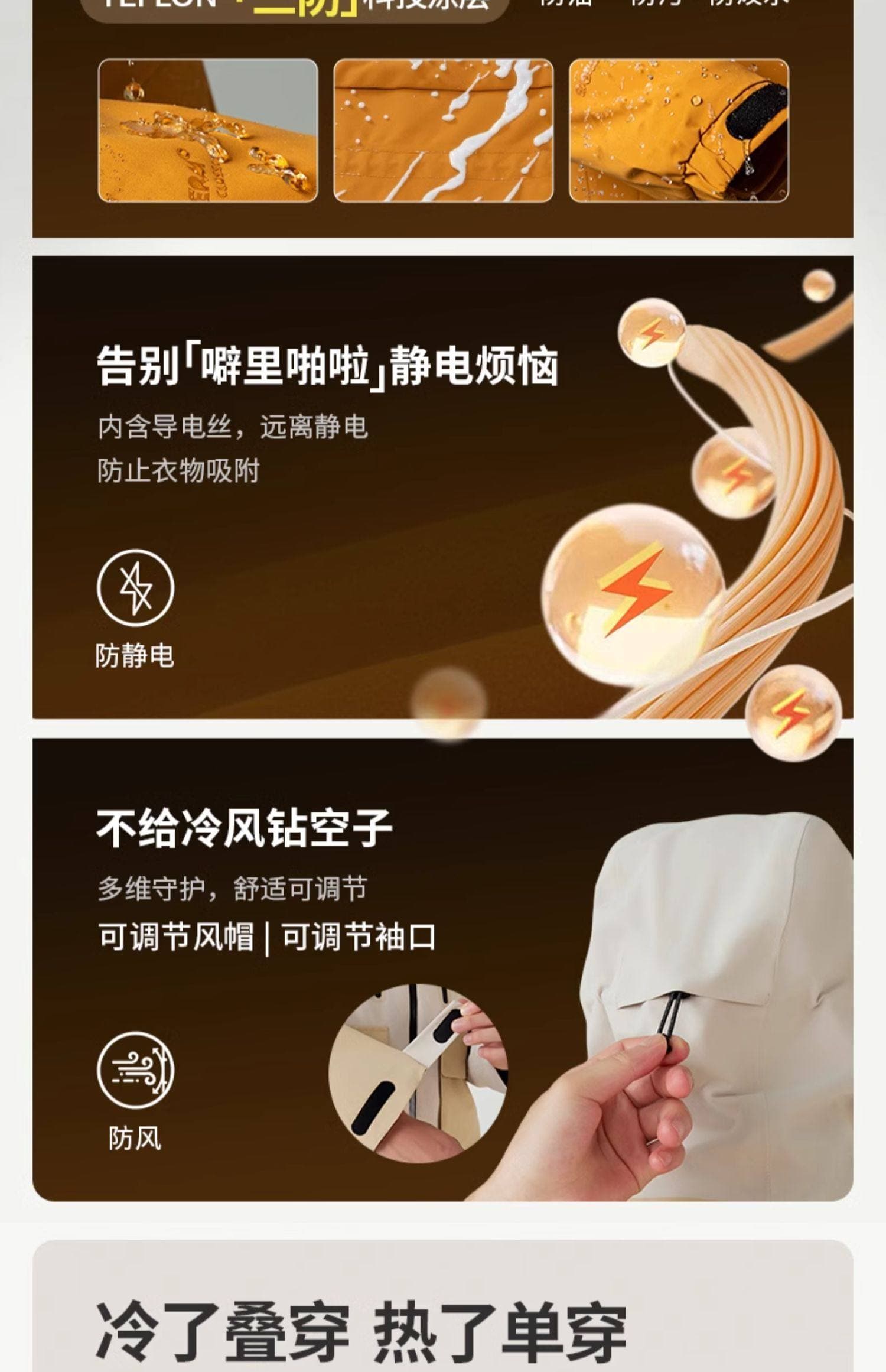 季节适配:春秋单穿外壳,冬季组合内胆,覆盖多季节需求