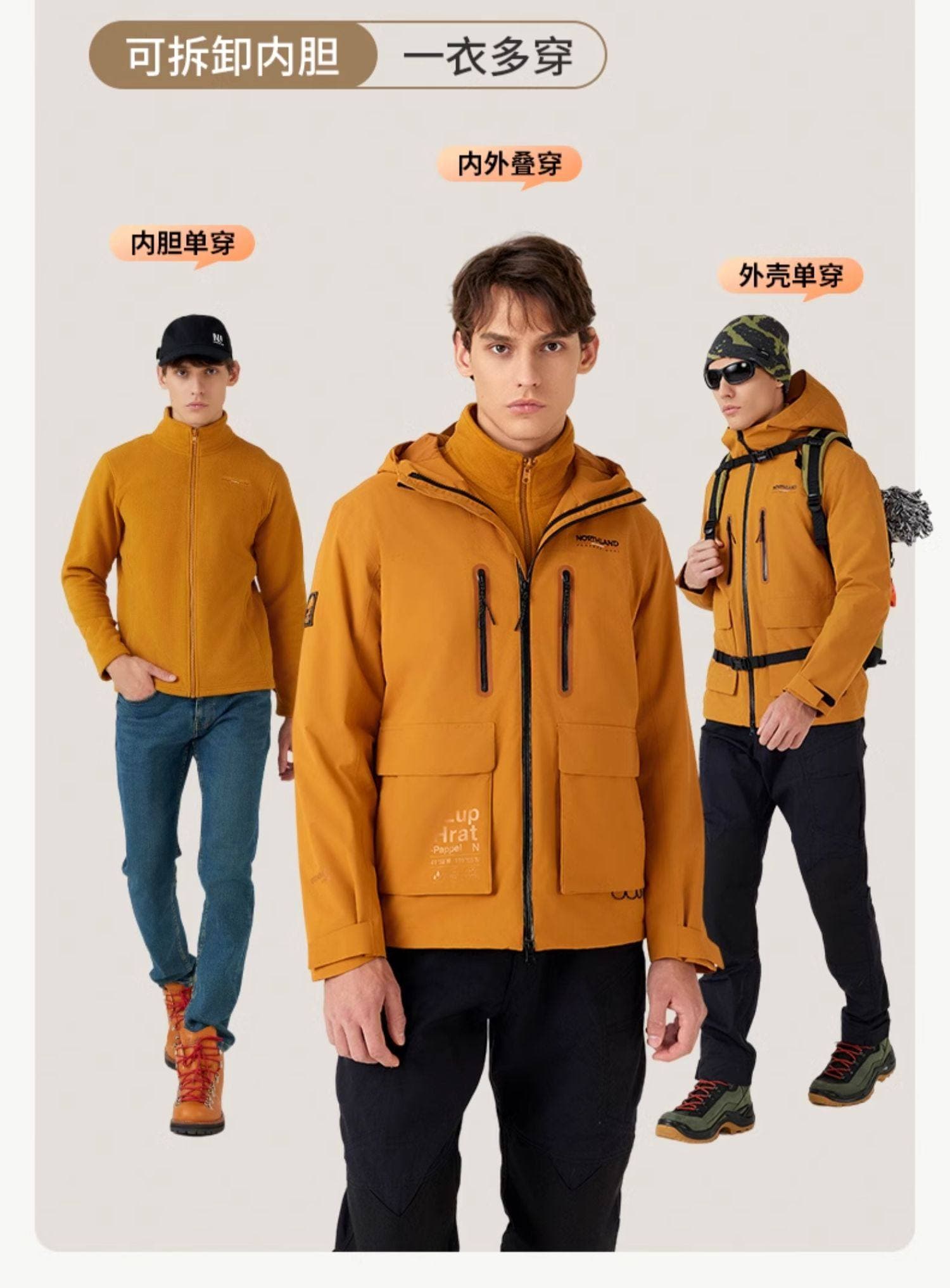 一衣三穿,可拆卸加绒内胆,适配 - 5℃至 15℃全场景温度