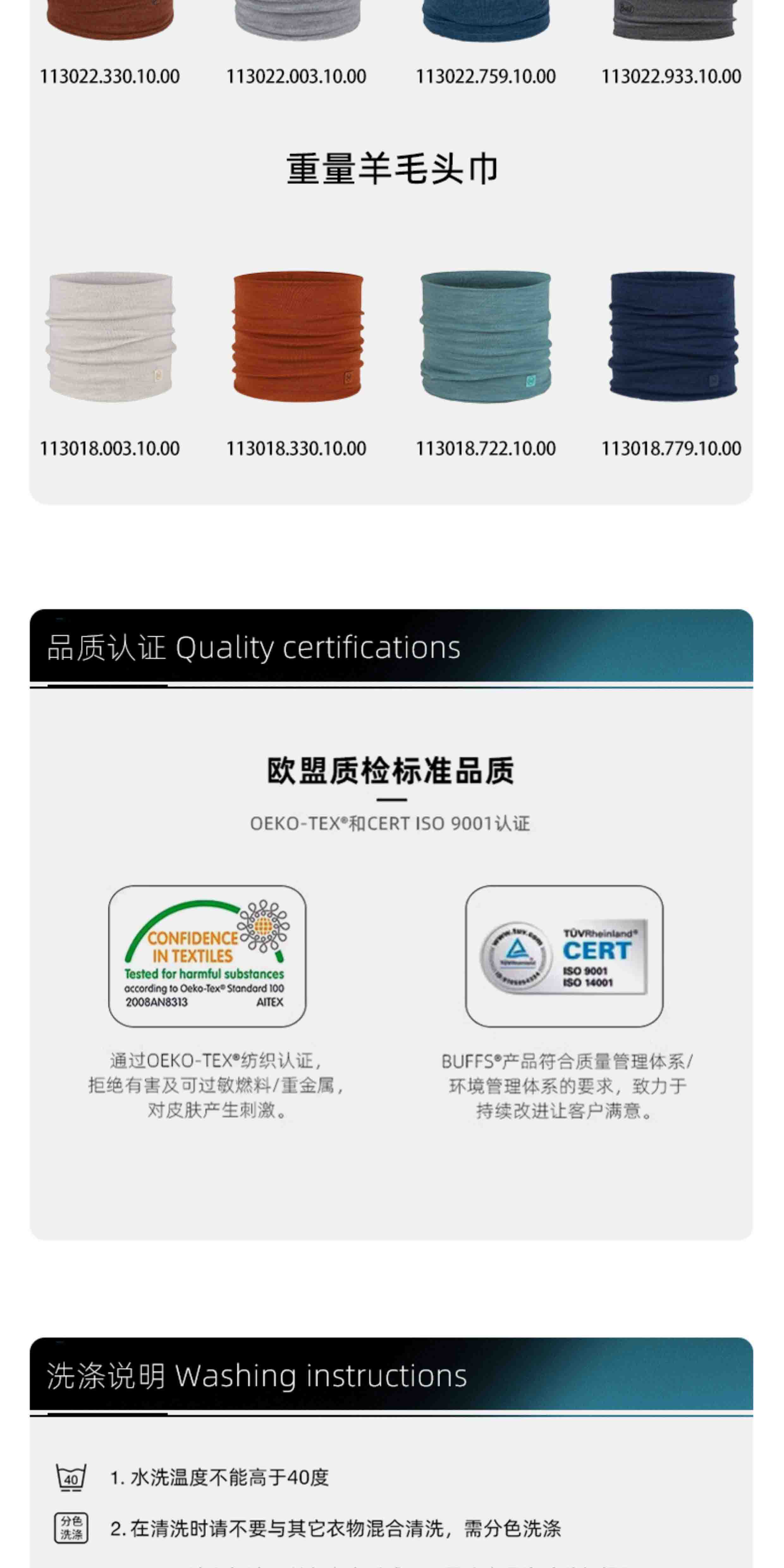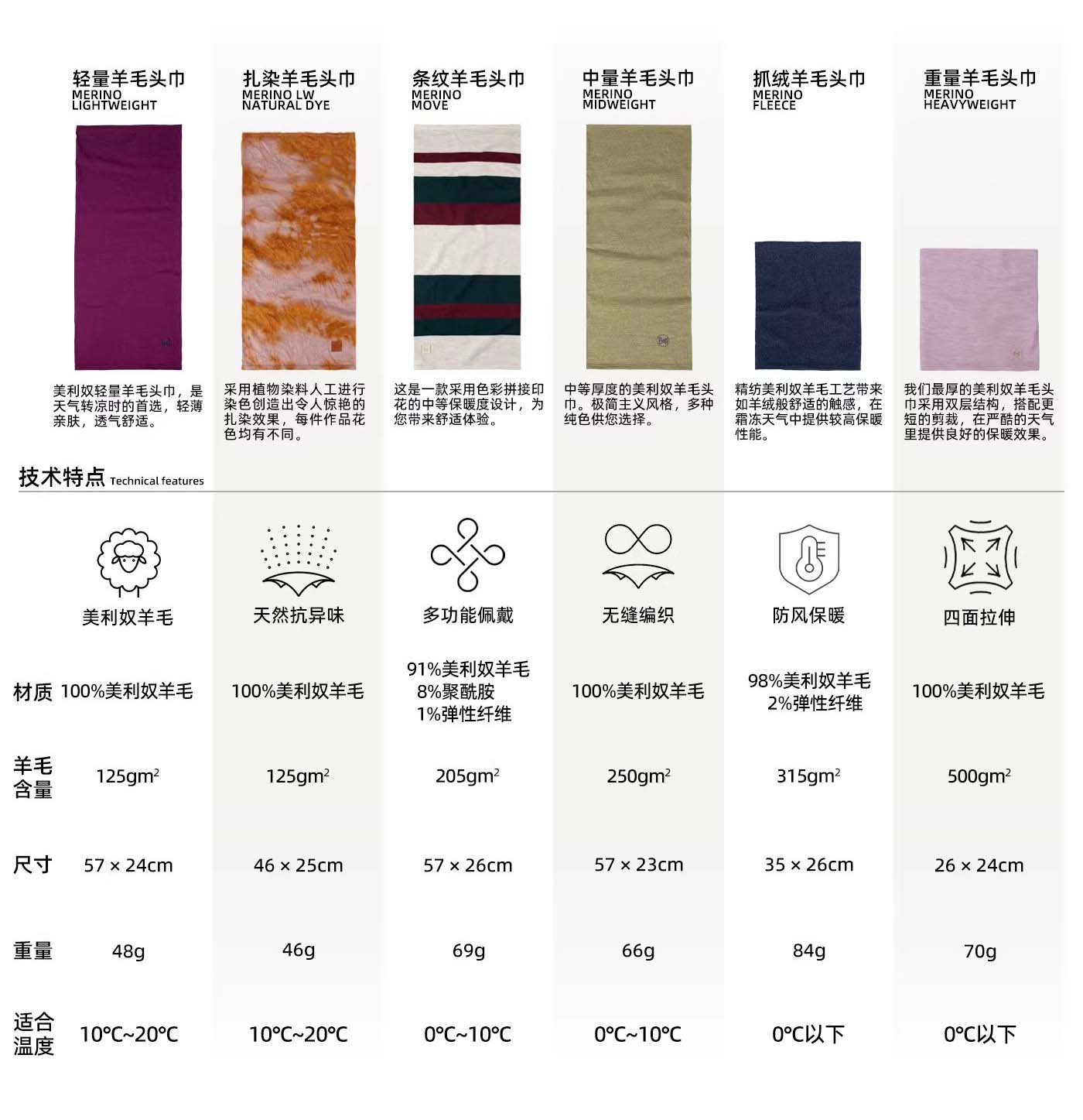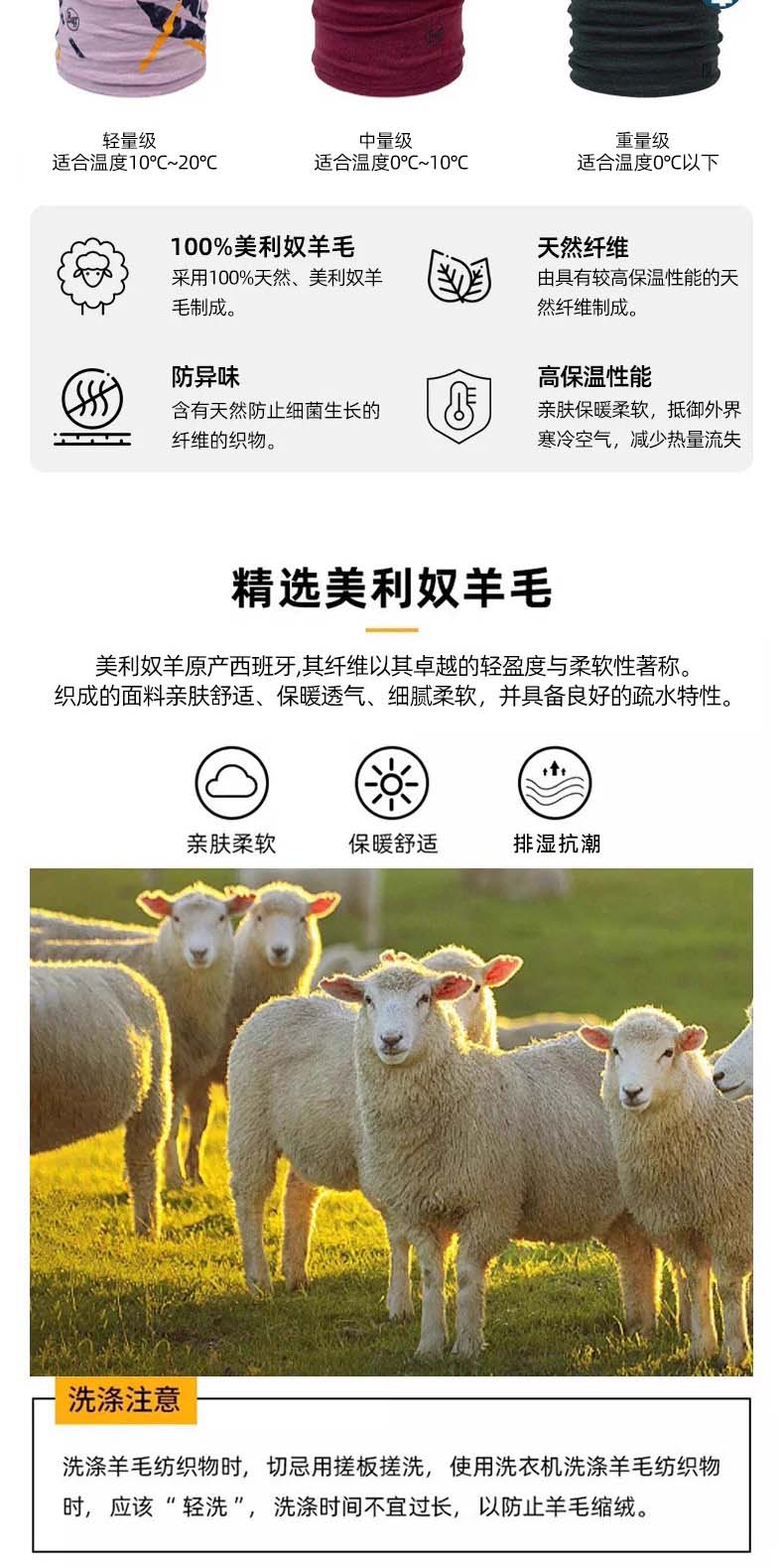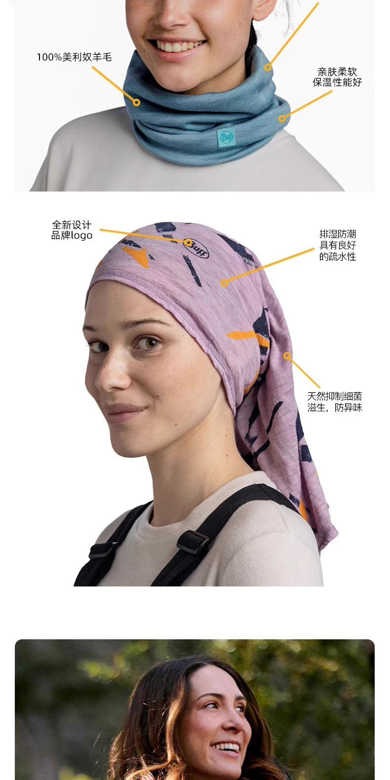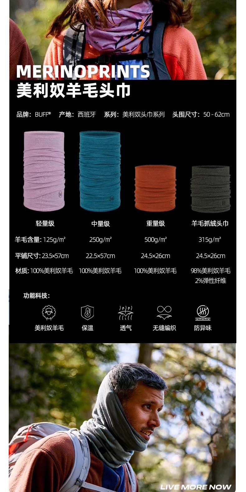 西班牙专业户外品牌的 BUFF 美利奴羊毛骑行防风魔术头巾,