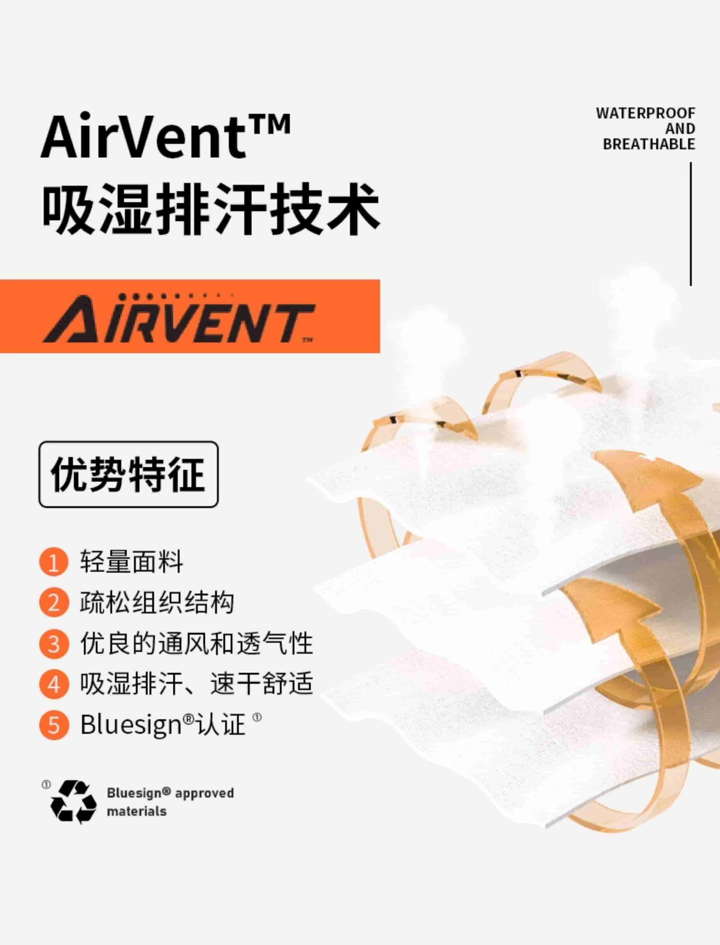 AirVent?面料就是为 “怕出汗黏身、怕衣服干得慢、怕运动有异味” 的户外爱好者设计的。穿上用它做的速干衣,你只管尽情运动,剩下的 “排汗、透气、干爽” 全交给面料搞定,让你在户外玩得更舒服、更自在!
