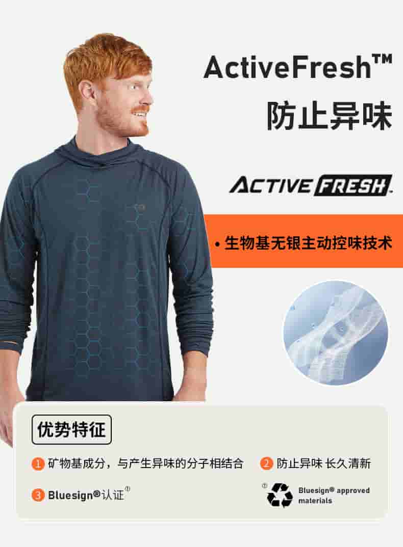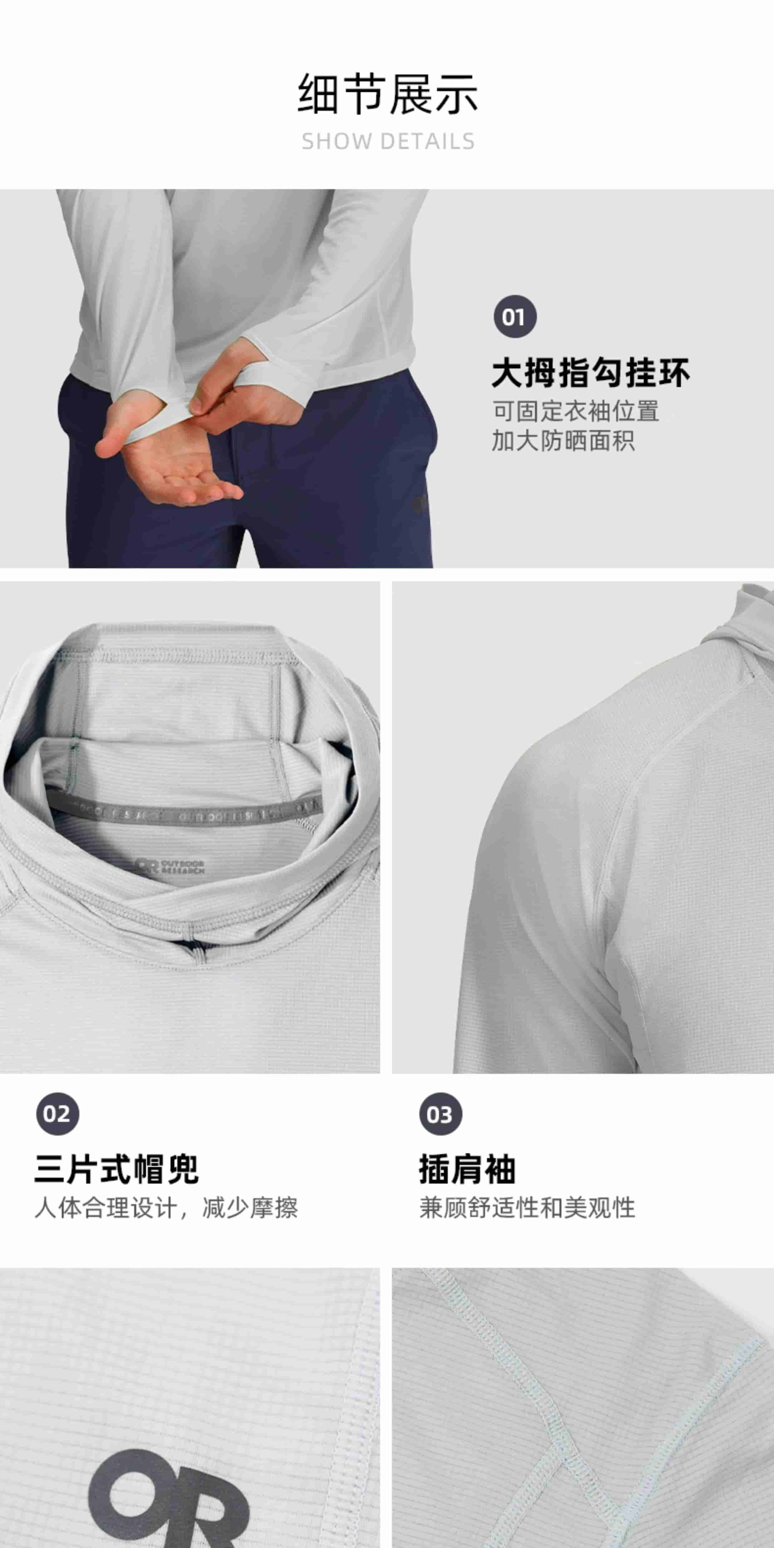Outdoor Research OR echo回声套头帽衫户外超轻防晒透气速干衣男 287625 海军蓝(Naval Blue) OR AirVent™再生面料速干排汗 连帽护颈防晒套头帽衫Echo 287625男款