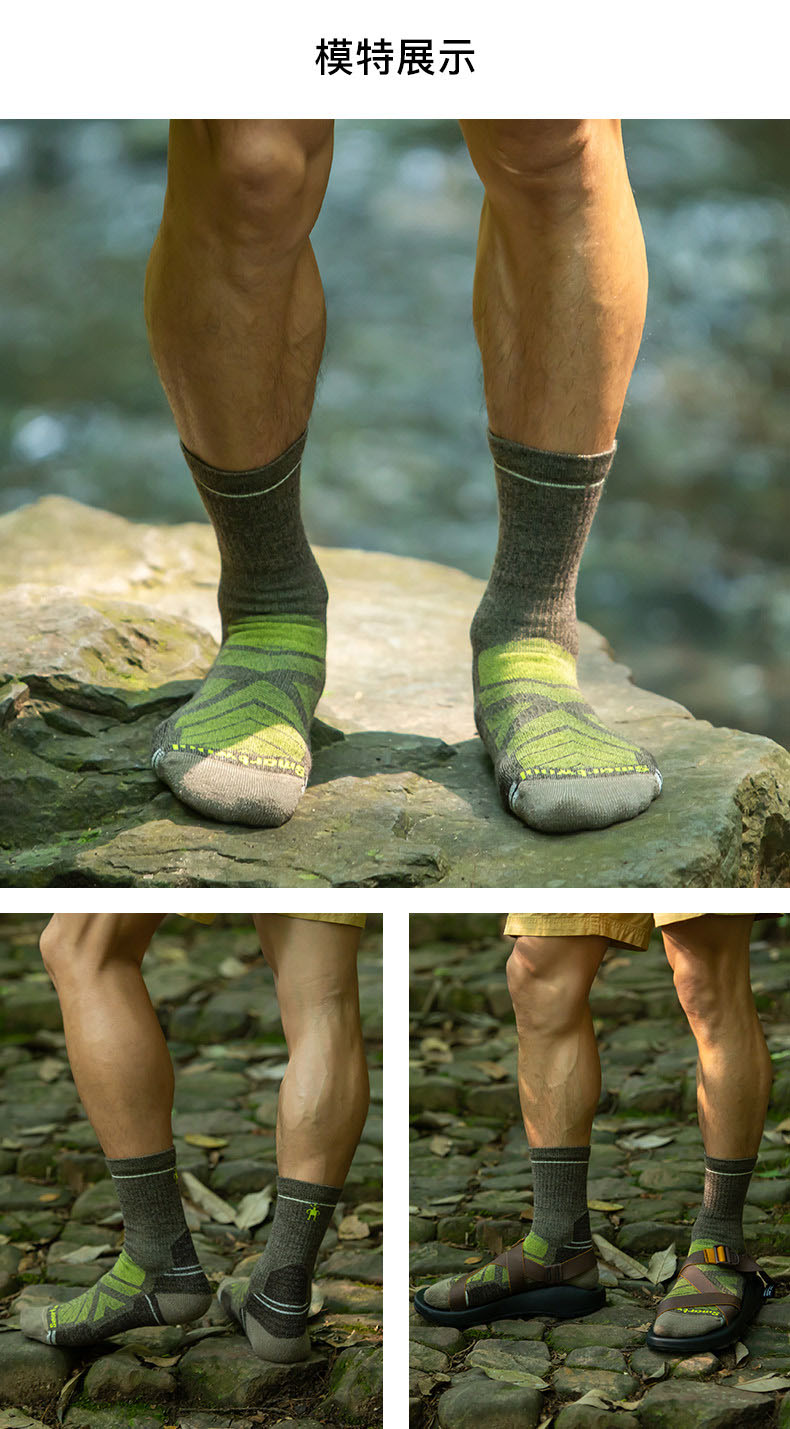 美利奴羊毛:超细纤维,柔软亲肤,自带吸湿控温、天然抗菌,户外袜顶配材质
