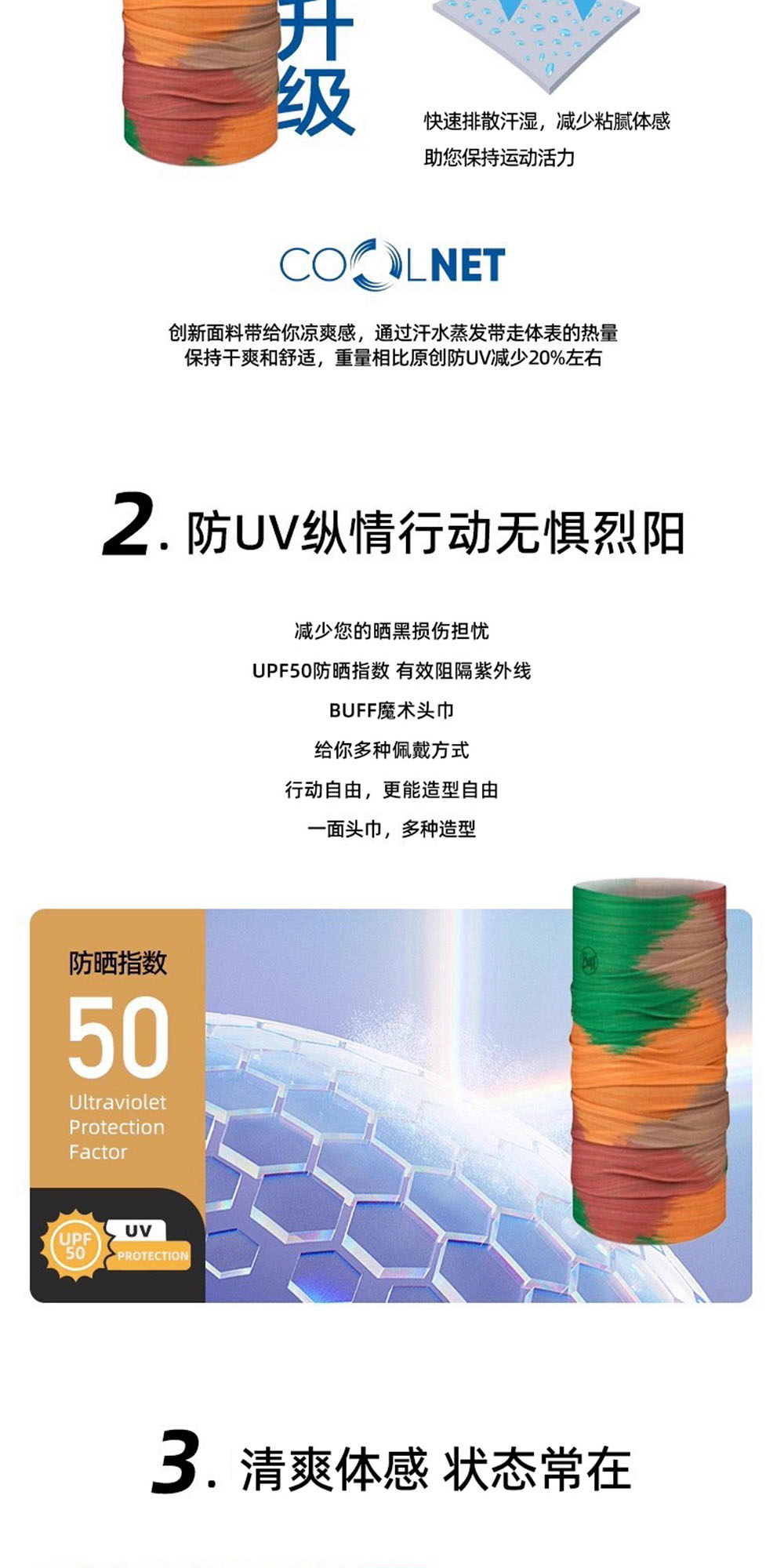西班牙 BUFF 酷爽 UV 系列,主打专业凉感防晒;