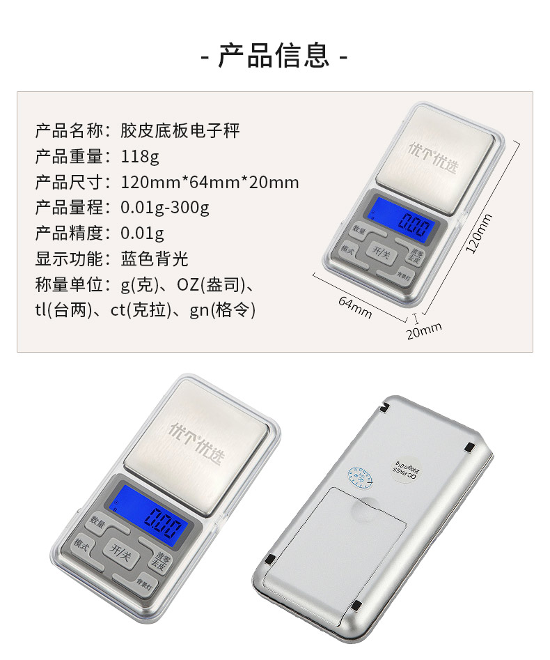 优个优选电子秤 便携式迷你电子秤 小型高精度口袋秤0.01g-300g【不含电池】 本品参加新春开练满129减20 299减50 499减80 999减120元大促!
