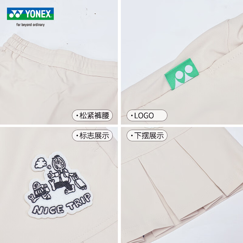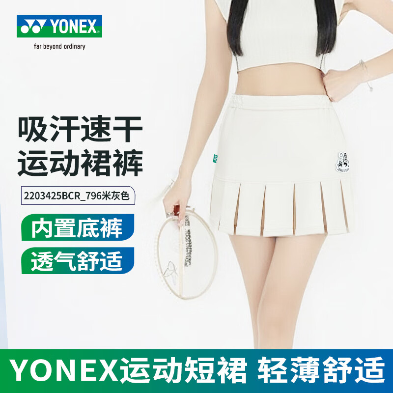 YONEX 尤尼克斯 羽毛球服 女款运动短裙 yy短裤 运动训练跑步健身裙裤 2203425BCR 米灰色 舒适透气 时尚百搭