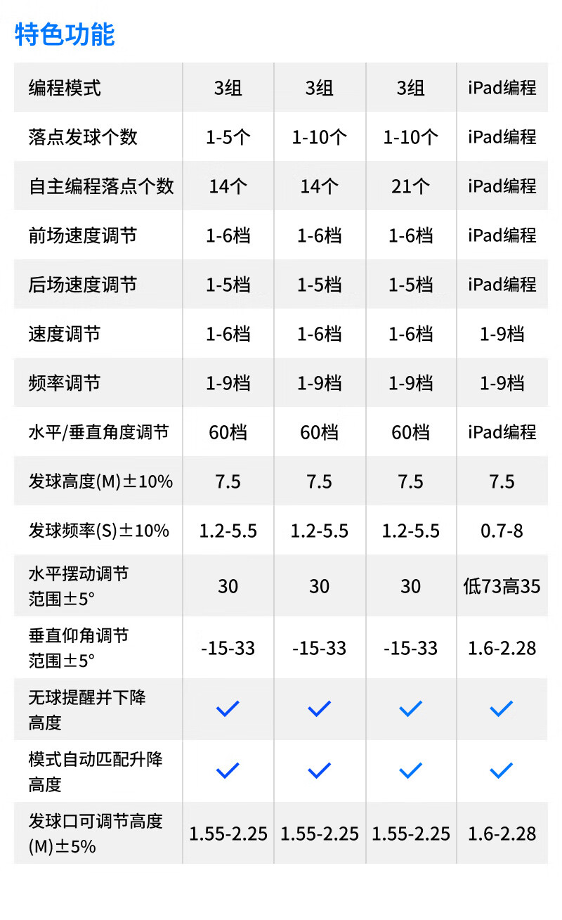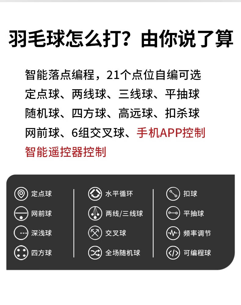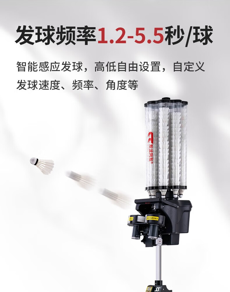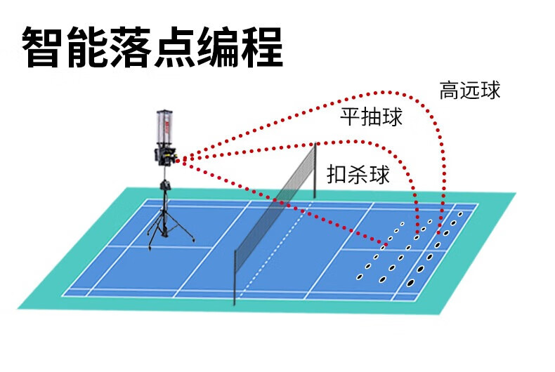 2.智能发球,高度可自由设定,速度、频率、角度等可自定义;